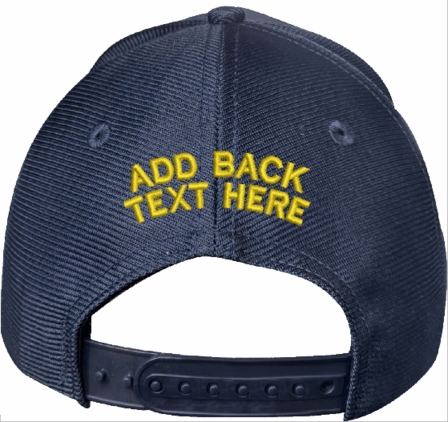 We will be glad to include scrambled eggs, which is an embroidered gold oak leaf added to the brim of the cap. For caps ordered with custom embroidered personalized text please allow an additional 3 to 5 days production time. All custom back text will be embroidered in ALL CAPS. Caps with back text or eggs are non-returnable unless there is a material defect in the cap. If a style is not selected the cap will be made using a high profile style cap as pictured.