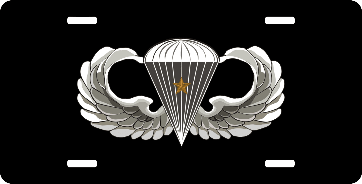 This Basic Combat 1 Jump Wings License Plate is made from heavy gauge aluminum and has a baked enamel finish to last for many years of use. Each plate measures 5 15/16" x 11 15/16". This license plate would make a wonderful addition to your collection or a great gift.