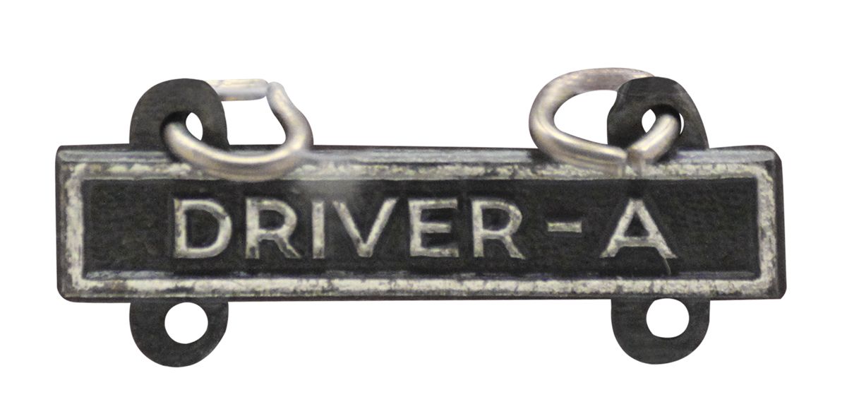 MilitaryBest is proud to offer this regulation Army Qualification Bar Driver A - Oxidized Finish. It is the same badge that is supplied to the U.S. Military. All MilitaryBest's Regulation Full Size Badges are of the highest quality available. We are proud to offer these badges in our product offerings. By ordering this badge you are confirming that it has been earned.