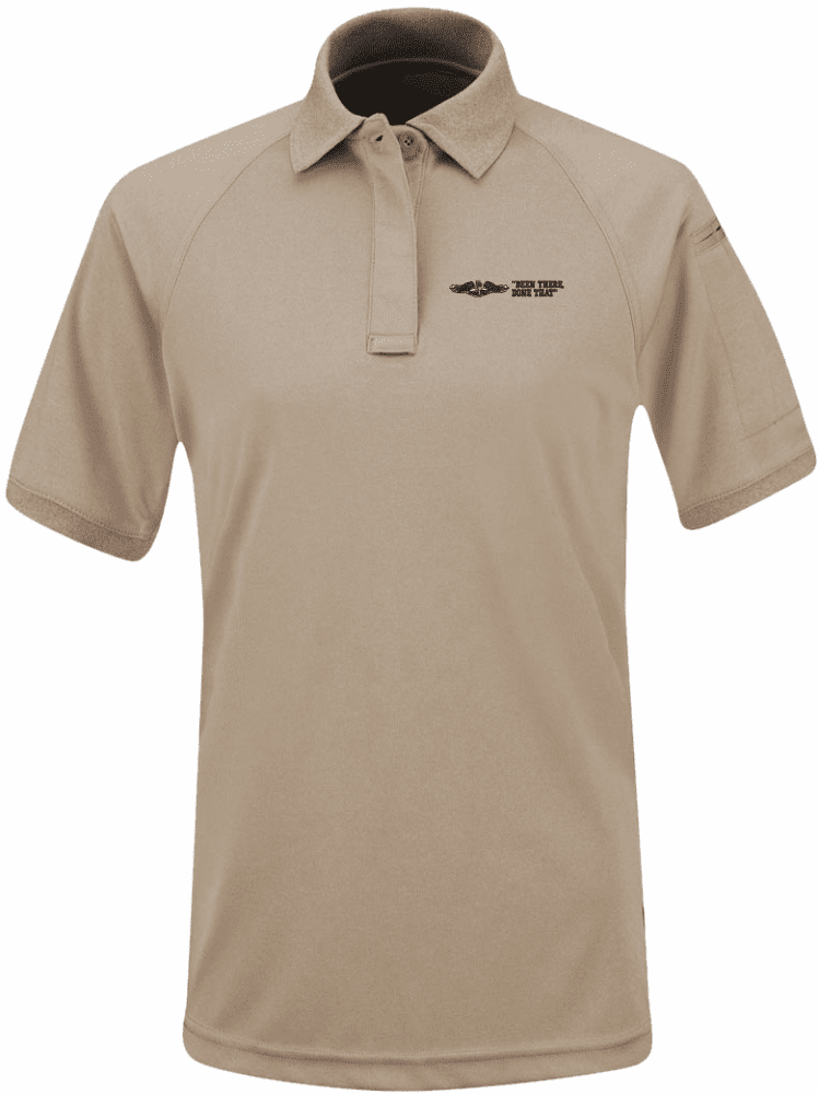 Note: Some of the Color Options pictured may not be available. Available Color Options are listed on the drop down menu above.MilitaryBest is proud to offer this custom embroidered U.S. Navy Enlisted Silver Dolphins Been There Done That Propper Women's Snag Free Polo. Each polo is made using a Snag Free 100% polyester moisture wicking material. This Ladies Propper Snag Free Polo is directly embroidered at our facilities in Scottsboro, AL.