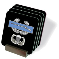 These CIB Jump Wings drink coasters are proudly made in the USA and their quality is guaranteed! Each of our military drink coasters measure 3 ¾”, has a beautiful gloss finish and is manufactured with a soft cork underside to protect your furniture and prevent slipping. This set of coasters is accompanied by a handsome wood coaster holder display rack as shown in our picture above. We are proud to offer these U.S. Army drink coasters and hope that you’ll enjoy them for years to come. Purchase for yourself or as a Military Gift for a friend or loved one.