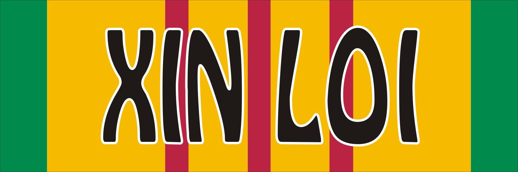 This Xin Loi Vietnam Service Ribbon sticker is Made in the USA at our facilities in Scottsboro, Alabama. This Xin Loi Vietnam Military Decal is 6 inches wide by 2 inches tall and larger sizes are available below. We have been producing high quality Military Decals for over 10 years and we guarantee the quality of each one.Select desired size by clicking the arrow below then select the “Purchase Now” button. For bulk pricing for custom and wholesale decals click here: Custom & Wholesale Decals!