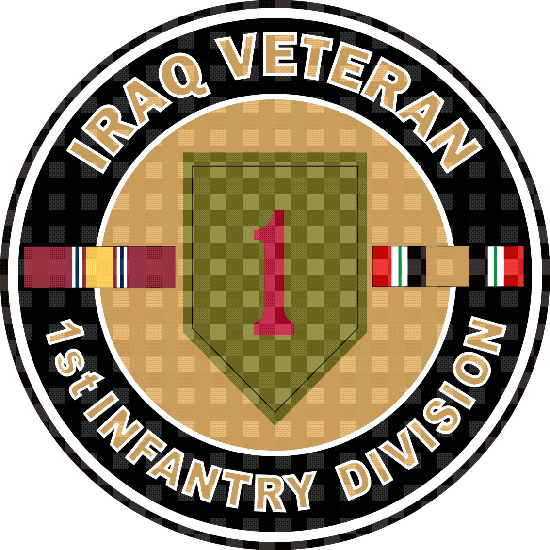 This U.S. Army Iraq Veteran 1st Infantry Decal Sticker is Made in the USA at our facilities in Scottsboro, Alabama. Each Iraq Veteran 1st Infantry Decal Sticker is made using the finest ink and vinyl available and all are made for outside applications. We have been producing high quality Military Decals for over 10 years and we guarantee the quality of each one.Choose from several sizes, and click the 'ADD TO CART' button. For bulk pricing for custom and wholesale decals click here: Custom & Wholesale Decals!