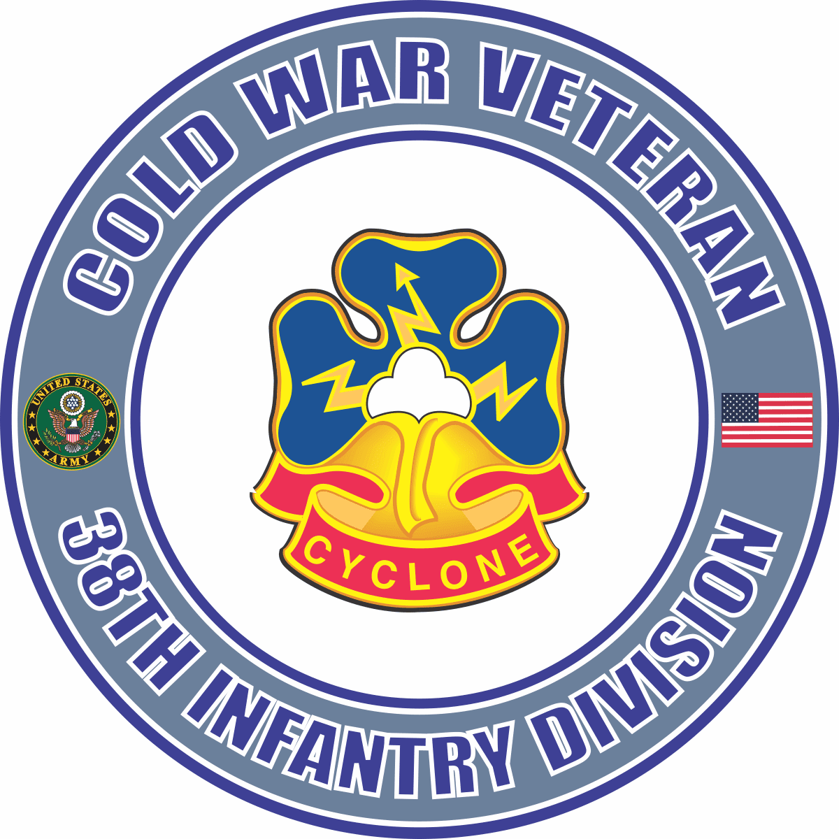 U.S. Army Cold War 38th Infantry Unit Crest Veteran DecalMilitaryBest is proud to honor our U.S. Army, U.S. Marine Corps, U.S. Navy, U.S. Coast Guard and U.S. Air Force Cold War Veterans with our exclusive Cold War Veteran Decals and Stickers. Each is proudly Made in The USA at our facitlies in Scottsboro, Alabama. Each Cold War Veteran decal is die cut with a contoured edge and each Veteran Decal is printed with UV resistant inks and is also laminated for extra long life. For bulk pricing for custom and wholesale decals click here: Custom & Wholesale Decals!