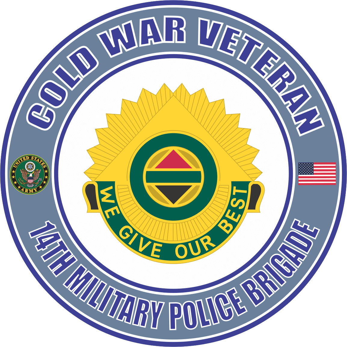 MilitaryBest is proud to honor our U.S. Army, U.S. Marine Corps, U.S. Navy, U.S. Coast Guard and U.S. Air Force Cold War Veterans with our exclusive Cold War Veteran Decals and Stickers. Each U.S. Army Cold War 14th Military Police Brigade Veteran Decal is proudly Made in The USA at our facitlies in Scottsboro, Alabama. Each Cold War Veteran decal is die cut with a contoured edge and each Veteran Decal is printed with UV resistant inks and is also laminated for extra long life. For bulk pricing for custom and wholesale decals click here: Custom & Wholesale Decals!*While many of our customers use our decals on a variety of surfaces. Their intended purpose is for windshield applications