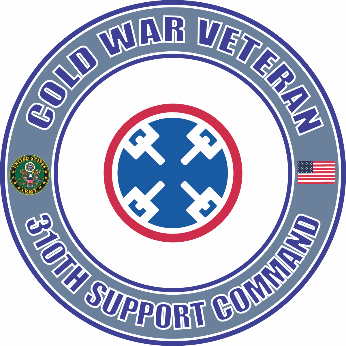 This U.S. Army Cold War 310th Support Command Veteran Decalis Made in the USA at our facilities in Scottsboro, Alabama. Each U.S. Army Cold War 310th Support Command Veteran Decalis made using the finest ink and vinyl available and all are made for outside applications. We have been producing high quality Military Decals for over 10 years and we guarantee the quality of each one. Choose from several sizes, and click the 'ADD TO CART' button. For bulk pricing for custom and wholesale decals click here: Custom & Wholesale Decals!*MilitaryBest customers use our decals on a variety of surfaces, however, their intended purpose is for windshield applications.