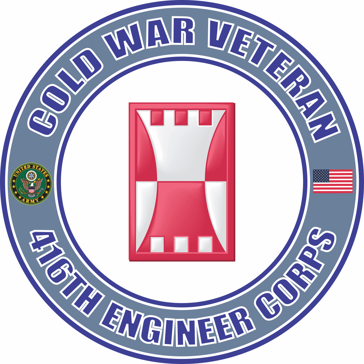 This U.S. Army Cold War 416th Engineer Corps Command Veteran Decalis Made in the USA at our facilities in Scottsboro, Alabama. Each U.S. Army Cold War 416th Engineer Corps Command Veteran Decalis made using the finest ink and vinyl available and all are made for outside applications. We have been producing high quality Military Decals for over 10 years and we guarantee the quality of each one. Choose from several sizes, and click the 'ADD TO CART' button. For bulk pricing for custom and wholesale decals click here: Custom & Wholesale Decals!*MilitaryBest customers use our decals on a variety of surfaces, however, their intended purpose is for windshield applications.