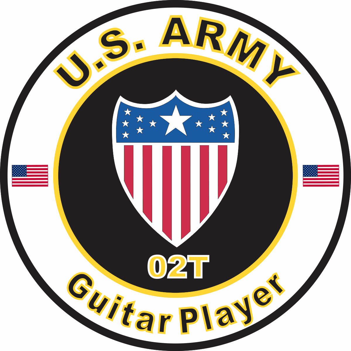 This U.S. Army MOS 02T Guitar Player sticker is Made in the USA at our facilities in Scottsboro, Alabama. Each U.S. Army MOS 02T Guitar Player Decal is made using the finest Ink, Vinyl and Laminate available and all are made for outside applications but are best suited for application to glass and windshields. Our production teams have been producing high quality Military Decals for over 15 Years and we guarantee the quality of each one. Always remember to apply to a clean, dry surface. Choose from several sizes, and click the 'ADD TO CART' button. For bulk pricing for custom and wholesale decals click here: Custom & Wholesale Decals!