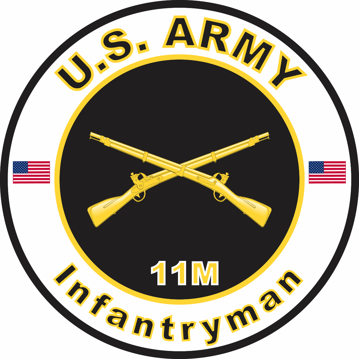 This U.S. Army MOS 11M Infantryman sticker is Made in the USA at our facilities in Scottsboro, Alabama. Each U.S. Army MOS 11M Infantryman Decal is made using the finest Ink, Vinyl and Laminate available and all are made for outside applications but are best suited for application to glass and windshields. Our production teams have been producing high quality Military Decals for over 15 Years and we guarantee the quality of each one. Always remember to apply to a clean, dry surface. Choose from several sizes, and click the 'ADD TO CART' button. For bulk pricing for custom and wholesale decals click here: Custom & Wholesale Decals!