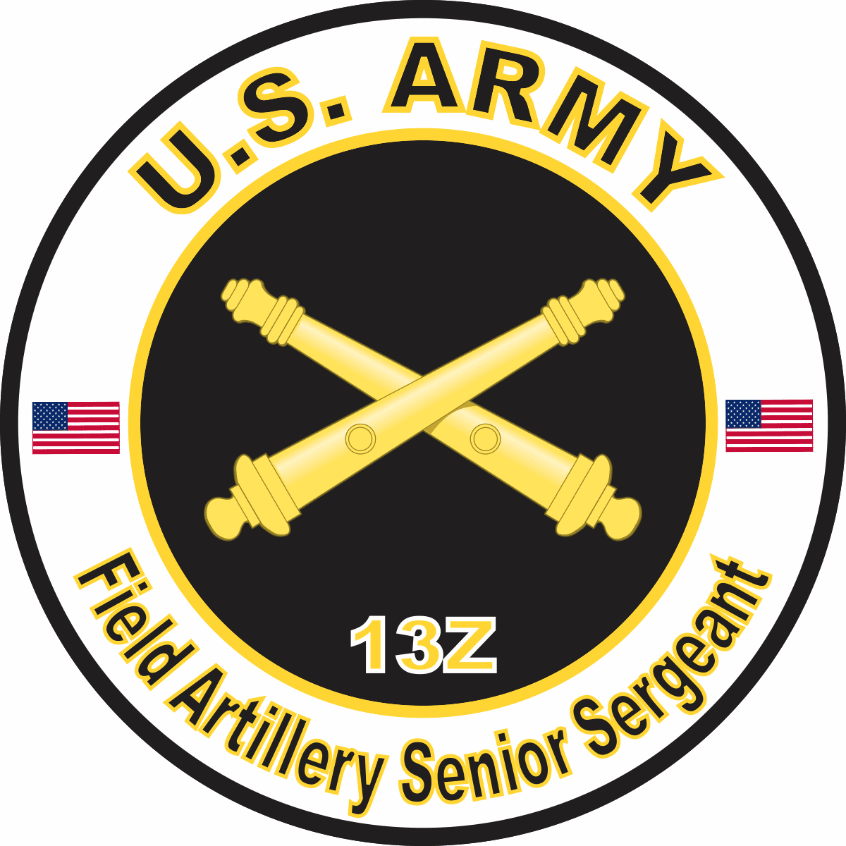 This U.S. Army MOS 13Z Field Artillery Senior Sergeant sticker is Made in the USA at our facilities in Scottsboro, Alabama. Each U.S. Army MOS 13Z Field Artillery Senior Sergeant Sergeant Decal is made using the finest Ink, Vinyl and Laminate available and all are made for outside applications but are best suited for application to glass and windshields. Our production teams have been producing high quality Military Decals for over 15 Years and we guarantee the quality of each one. Always remember to apply to a clean, dry surface. Choose from several sizes, and click the 'ADD TO CART' button. For bulk pricing for custom and wholesale decals click here: Custom & Wholesale Decals!