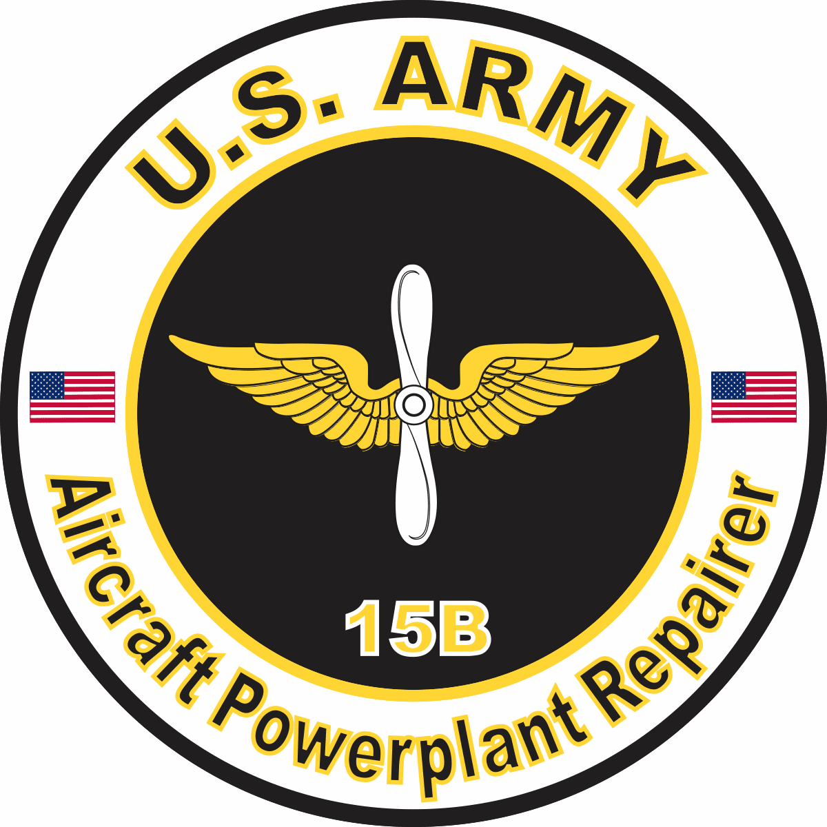 This U.S. Army MOS 15B Aircraft Powerplant Repairer sticker is Made in the USA at our facilities in Scottsboro, Alabama. Each U.S. Army MOS 15B Aircraft Powerplant Repairer Decal is made using the finest Ink, Vinyl and Laminate available and all are made for outside applications but are best suited for application to glass and windshields. Our production teams have been producing high quality Military Decals for over 15 Years and we guarantee the quality of each one. Always remember to apply to a clean, dry surface. Choose from several sizes, and click the 'ADD TO CART' button. For bulk pricing for custom and wholesale decals click here: Custom & Wholesale Decals!