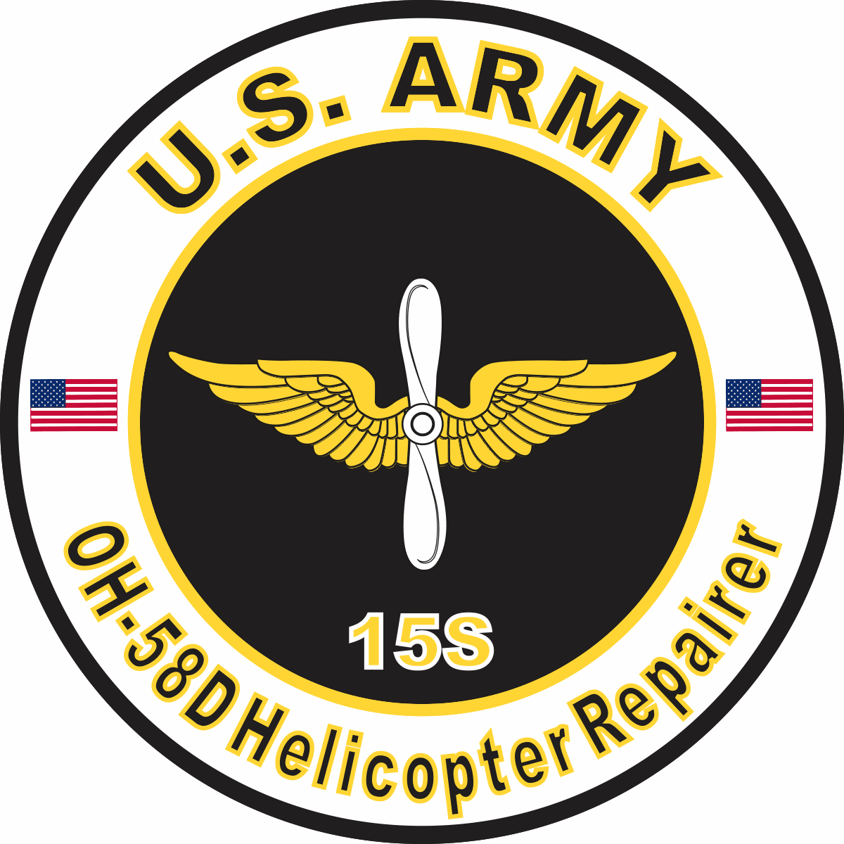 This U.S. Army MOS 15S OH-58-D Helicopter Repairer sticker is Made in the USA at our facilities in Scottsboro, Alabama. Each U.S. Army MOS 15S OH-58-D Helicopter Repairer Decal is made using the finest Ink, Vinyl and Laminate available and all are made for outside applications but are best suited for application to glass and windshields. Our production teams have been producing high quality Military Decals for over 15 Years and we guarantee the quality of each one. Always remember to apply to a clean, dry surface. Choose from several sizes, and click the 'ADD TO CART' button. For bulk pricing for custom and wholesale decals click here: Custom & Wholesale Decals!