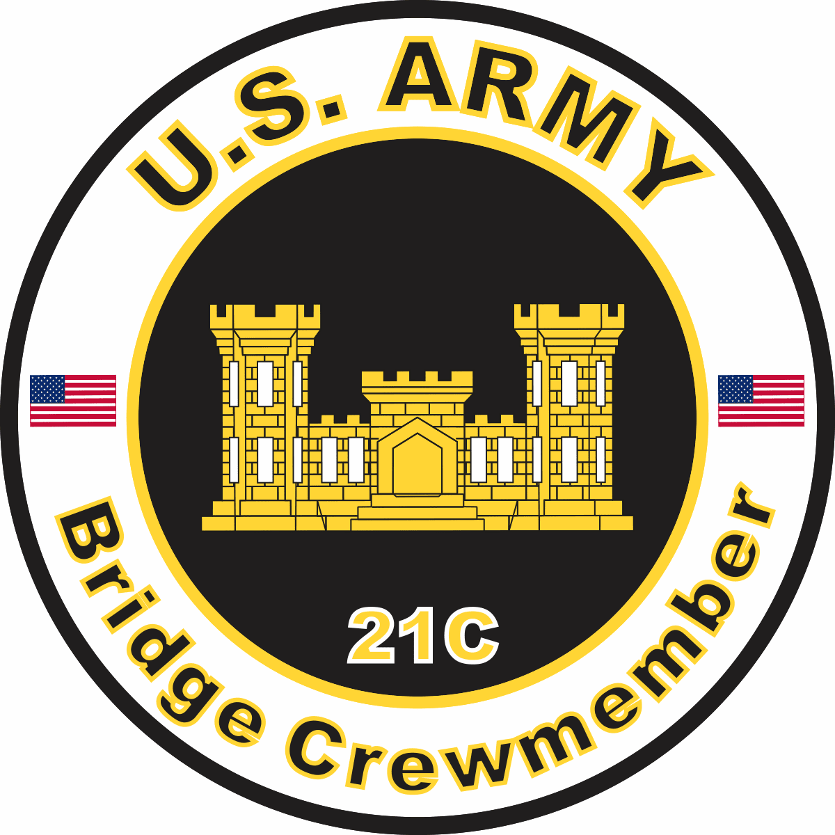 This U.S. Army MOS 21C Bridge Crewmember sticker is Made in the USA at our facilities in Scottsboro, Alabama. Each U.S. Army MOS 21C Bridge Crewmember Decal is made using the finest Ink, Vinyl and Laminate available and all are made for outside applications but are best suited for application to glass and windshields. Our production teams have been producing high quality Military Decals for over 15 Years and we guarantee the quality of each one. Always remember to apply to a clean, dry surface. Choose from several sizes, and click the 'ADD TO CART' button. For bulk pricing for custom and wholesale decals click here: Custom & Wholesale Decals!