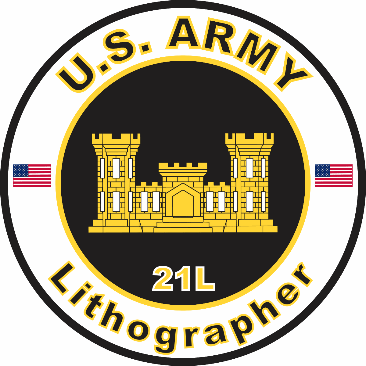 This U.S. Army MOS 21L Lithographer sticker is Made in the USA at our facilities in Scottsboro, Alabama. Each U.S. Army MOS 21L Lithographer Decal is made using the finest Ink, Vinyl and Laminate available and all are made for outside applications but are best suited for application to glass and windshields. Our production teams have been producing high quality Military Decals for over 15 Years and we guarantee the quality of each one. Always remember to apply to a clean, dry surface. Choose from several sizes, and click the 'ADD TO CART' button. For bulk pricing for custom and wholesale decals click here: Custom & Wholesale Decals!