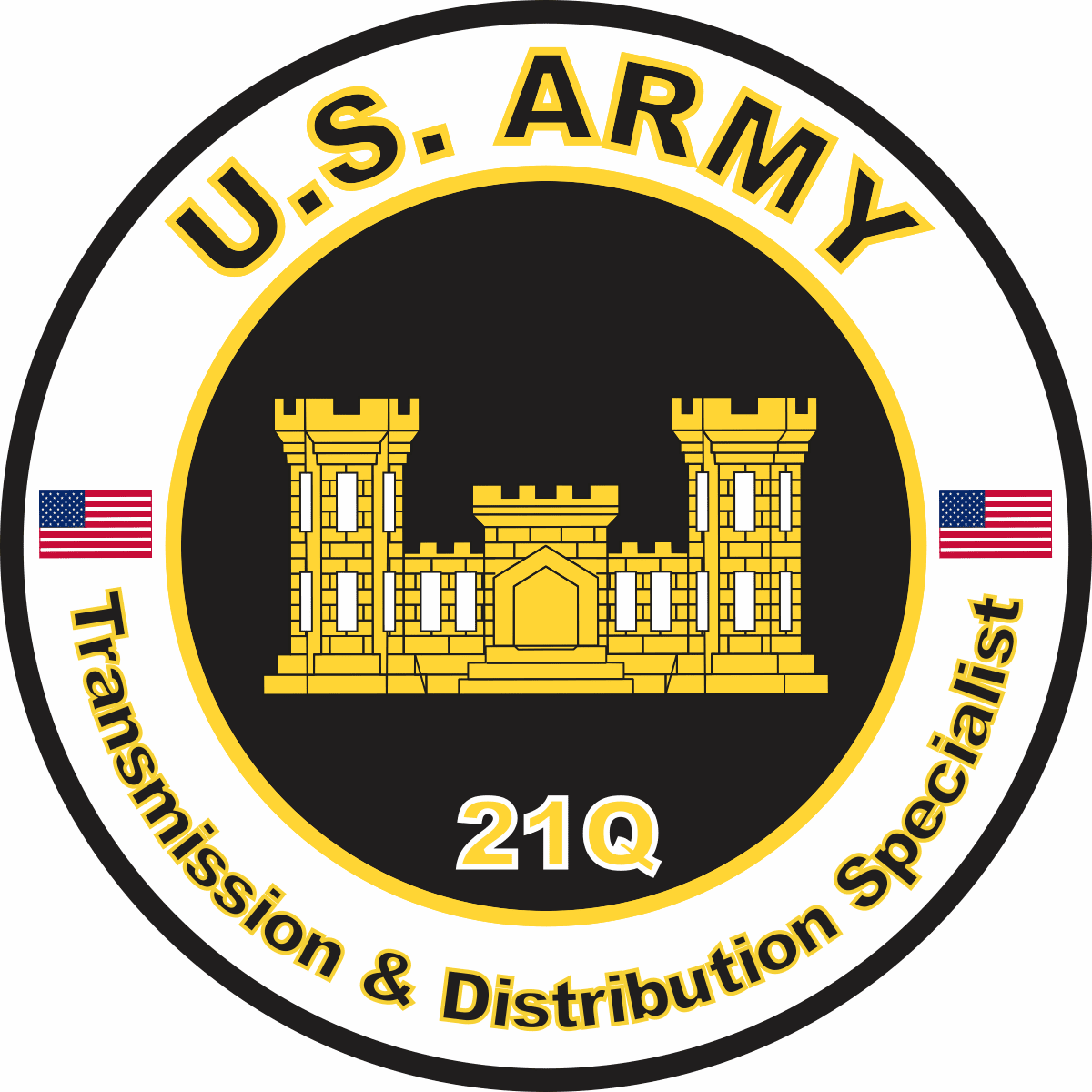 This U.S. Army MOS 21Q Transmission and Distribution Specialist sticker is Made in the USA at our facilities in Scottsboro, Alabama. Each U.S. Army MOS 21Q Transmission and Distribution Specialist Decal is made using the finest Ink, Vinyl and Laminate available and all are made for outside applications but are best suited for application to glass and windshields. Our production teams have been producing high quality Military Decals for over 15 Years and we guarantee the quality of each one. Always remember to apply to a clean, dry surface. Choose from several sizes, and click the 'ADD TO CART' button. For bulk pricing for custom and wholesale decals click here: Custom & Wholesale Decals!