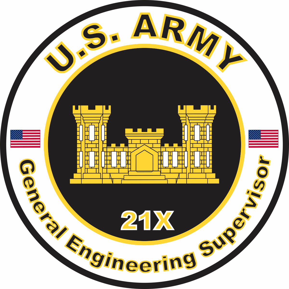 This U.S. Army MOS 21X General Engineering Supervisor sticker is Made in the USA at our facilities in Scottsboro, Alabama. Each U.S. Army MOS 21X General Engineering Supervisor Decal is made using the finest Ink, Vinyl and Laminate available and all are made for outside applications but are best suited for application to glass and windshields. Our production teams have been producing high quality Military Decals for over 15 Years and we guarantee the quality of each one. Always remember to apply to a clean, dry surface. Choose from several sizes, and click the 'ADD TO CART' button. For bulk pricing for custom and wholesale decals click here: Custom & Wholesale Decals!
