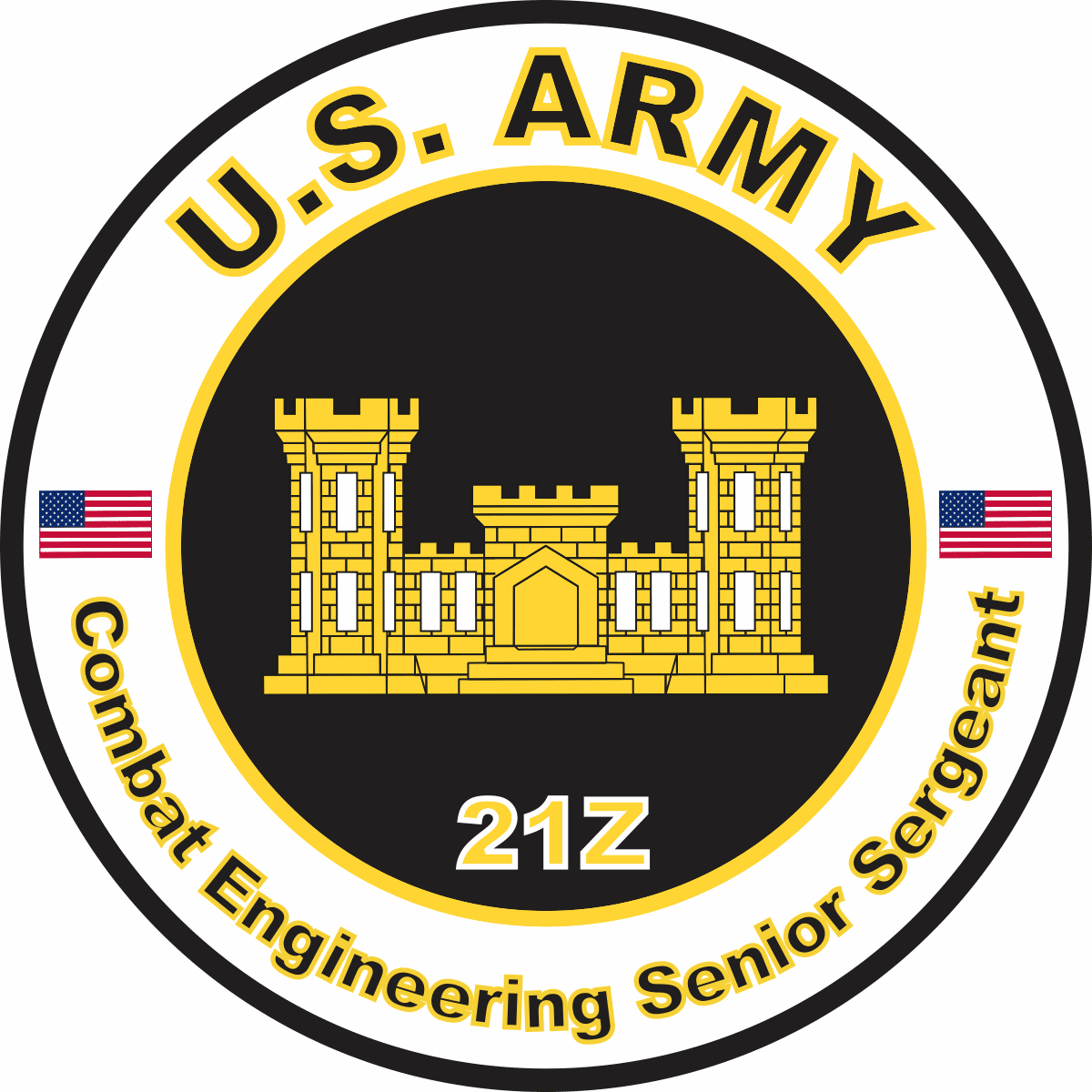 This U.S. Army MOS 21Z Combat Engineering Senior Sergeant sticker is Made in the USA at our facilities in Scottsboro, Alabama. Each U.S. Army MOS 21Z Combat Engineering Senior Sergeant Decal is made using the finest Ink, Vinyl and Laminate available and all are made for outside applications but are best suited for application to glass and windshields. Our production teams have been producing high quality Military Decals for over 15 Years and we guarantee the quality of each one. Always remember to apply to a clean, dry surface. Choose from several sizes, and click the 'ADD TO CART' button. For bulk pricing for custom and wholesale decals click here: Custom & Wholesale Decals!