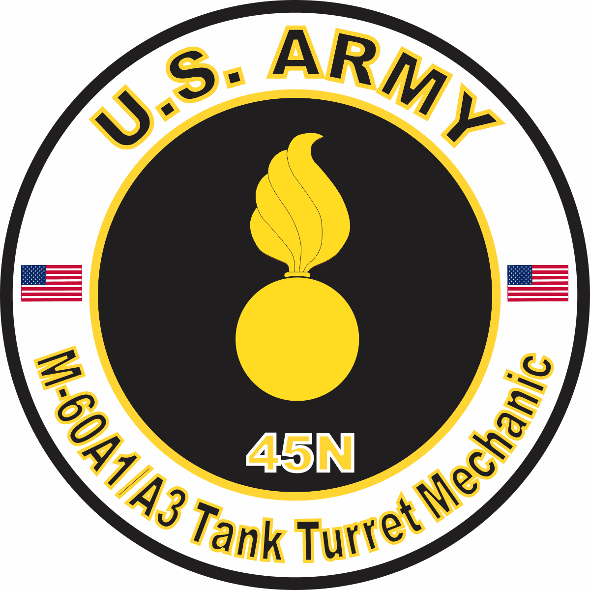 This U.S. Army MOS 45N M60 A1-A3 Tank Turret Mechanic sticker is Made in the USA at our facilities in Scottsboro, Alabama. Each U.S. Army MOS 45N M60 A1-A3 Tank Turret Mechanic Decal is made using the finest Ink, Vinyl and Laminate available and all are made for outside applications but are best suited for application to glass and windshields. Our production teams have been producing high quality Military Decals for over 15 Years and we guarantee the quality of each one. Always remember to apply to a clean, dry surface. Choose from several sizes, and click the 'ADD TO CART' button. For bulk pricing for custom and wholesale decals click here: Custom & Wholesale Decals!