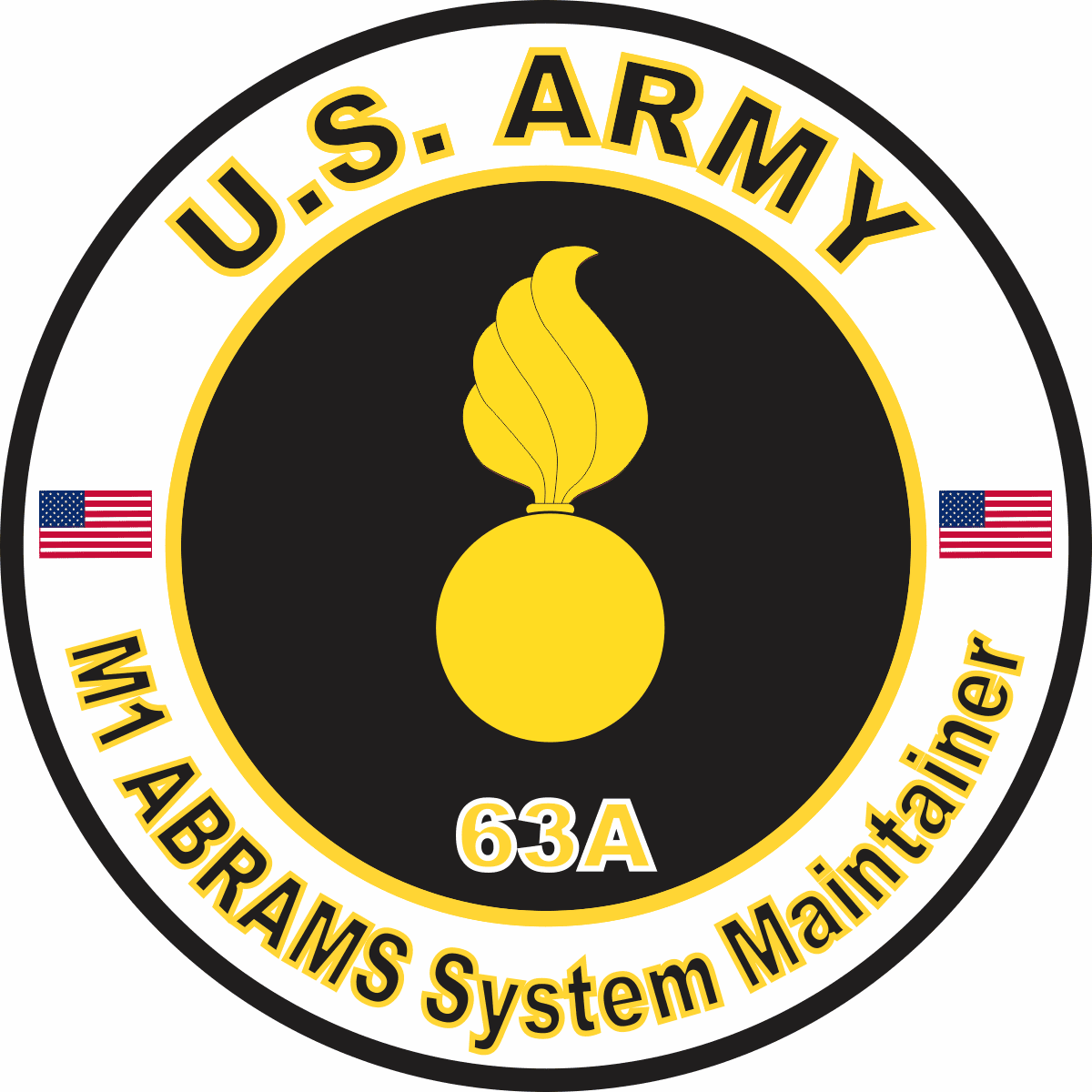 This U.S. Army MOS 63A M1-ABRAMS System Maintainer sticker is Made in the USA at our facilities in Scottsboro, Alabama. Each U.S. Army MOS 63A M1-ABRAMS System Maintainer Decal is made using the finest Ink, Vinyl and Laminate available and all are made for outside applications but are best suited for application to glass and windshields. Our production teams have been producing high quality Military Decals for over 15 Years and we guarantee the quality of each one. Always remember to apply to a clean, dry surface. Choose from several sizes, and click the 'ADD TO CART' button. For bulk pricing for custom and wholesale decals click here: Custom & Wholesale Decals!