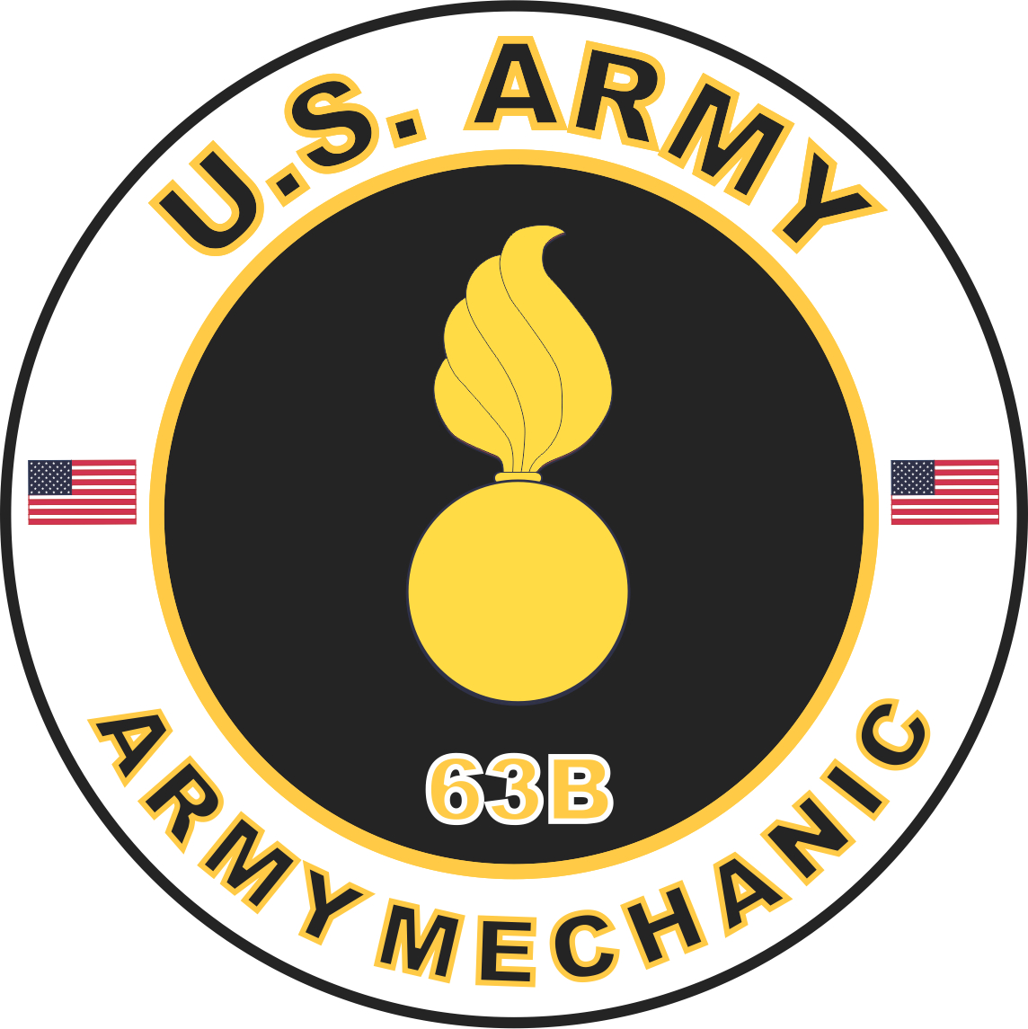 This U.S. Army MOS 63B Mechanic sticker is Made in the USA at our facilities in Scottsboro, Alabama. Each U.S. Army Decal is made using the finest Ink, Vinyl and Laminate available and all are made for outside applications but are best suited for application to glass and windshields. Our production teams have been producing high quality Military Decals for over 15 Years and we guarantee the quality of each one. Always remember to apply to a clean, dry surface. Choose from several sizes, and click the 'ADD TO CART' button. For bulk pricing for custom and wholesale decals click here: Custom & Wholesale Decals!