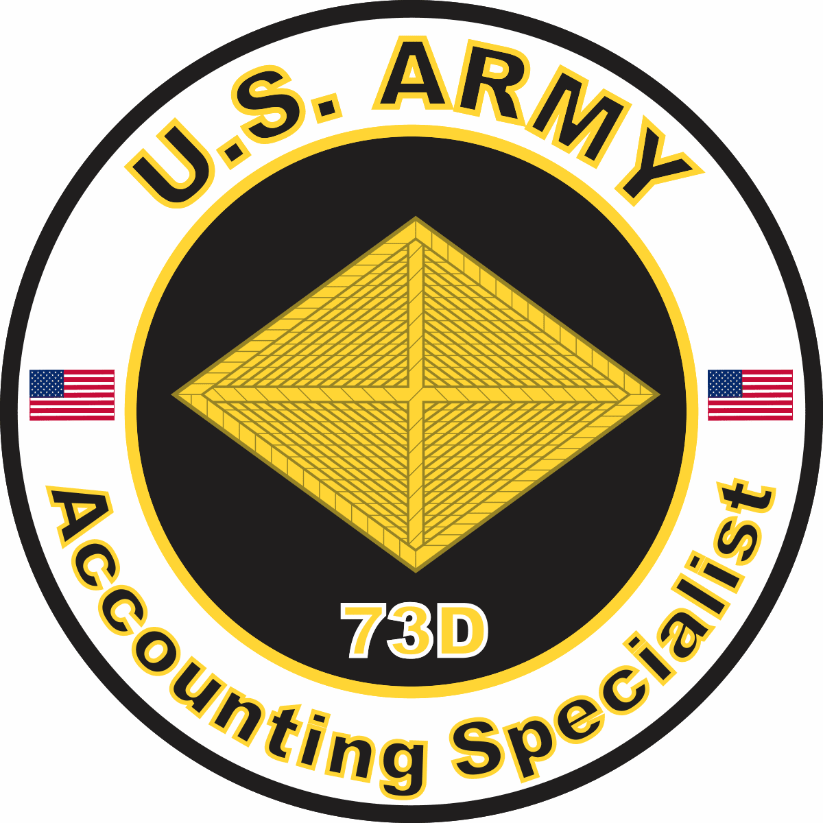 This U.S. Army MOS 73D Accounting Specialist sticker is Made in the USA at our facilities in Scottsboro, Alabama. Each U.S. Army MOS 73D Accounting Specialist Decal is made using the finest Ink, Vinyl and Laminate available and all are made for outside applications but are best suited for application to glass and windshields. Our production teams have been producing high quality Military Decals for over 15 Years and we guarantee the quality of each one. Always remember to apply to a clean, dry surface. Choose from several sizes, and click the 'ADD TO CART' button. For bulk pricing for custom and wholesale decals click here: Custom & Wholesale Decals!