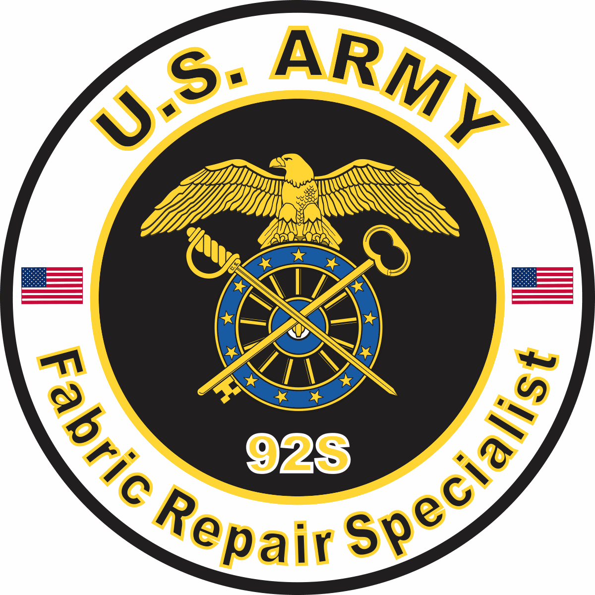 This U.S. Army MOS 92S Fabric Repair Specialist sticker is Made in the USA at our facilities in Scottsboro, Alabama. Each U.S. Army MOS 92S Fabric Repair Specialist Decal is made using the finest Ink, Vinyl and Laminate available and all are made for outside applications but are best suited for application to glass and windshields. Our production teams have been producing high quality Military Decals for over 15 Years and we guarantee the quality of each one. Always remember to apply to a clean, dry surface. Choose from several sizes, and click the 'ADD TO CART' button. For bulk pricing for custom and wholesale decals click here: Custom & Wholesale Decals!