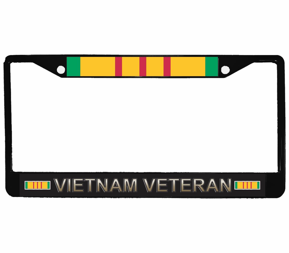 This Black Vietnam Veteran With Ribbon License Plate Frame is made from the highest quality finished metal alloy. Each one is designed to provide years of use. Each is designed and produced in our facility in Scottsboro, Alabama.Our Military License Plate Frames are standard designs and have been a staple in our product line for 15 years. Please check with your state and local regulations regarding suitability for displaying this License Plate Frame on you vehicle since these regulations may have changed over time.