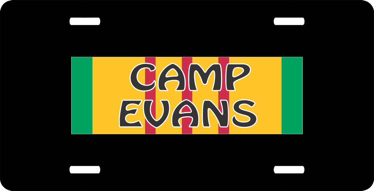 This Camp Evans Vietnam License Plate is made from heavy gauge aluminum and has a baked enamel finish to last for many years of use. Each plate measures 5 15/16" x 11 15/16". This license plate would make a wonderful addition to your collection or a great gift.