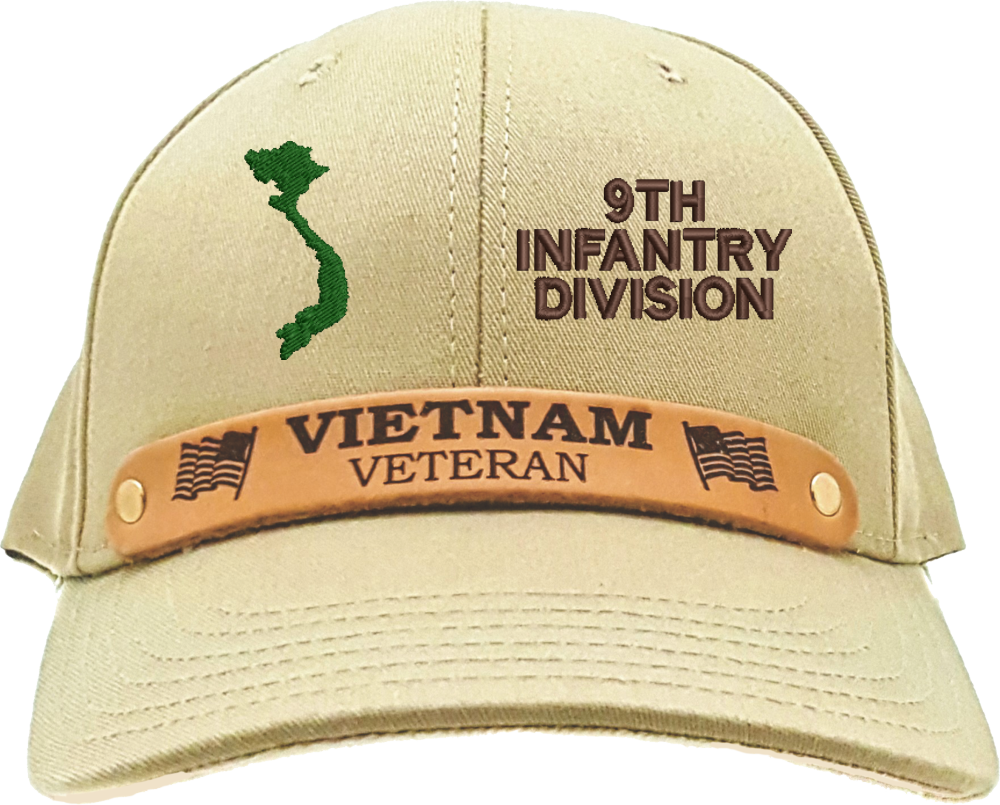 MilitaryBest is proud to offer this Made in the USA 9th Infantry Division Vietnam Veteran Leather Strap Cap . The hand crafted leather strap is engraved and attached to a Made in the USA Khaki cap with a hand crafted adjustable leather strap closure in the Missouri Ozarks by a Vietnam Veteran. Once crafted, this Vietnam Veteran hat is proudly embroidered at our facilities in Northeast Alabama. This is a one of a kind cap and we know of no others on the market. Thank you for your service and WELCOME HOME!