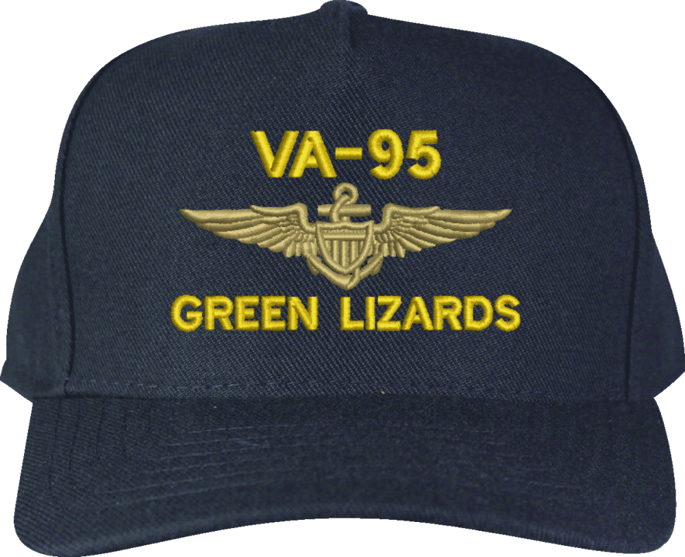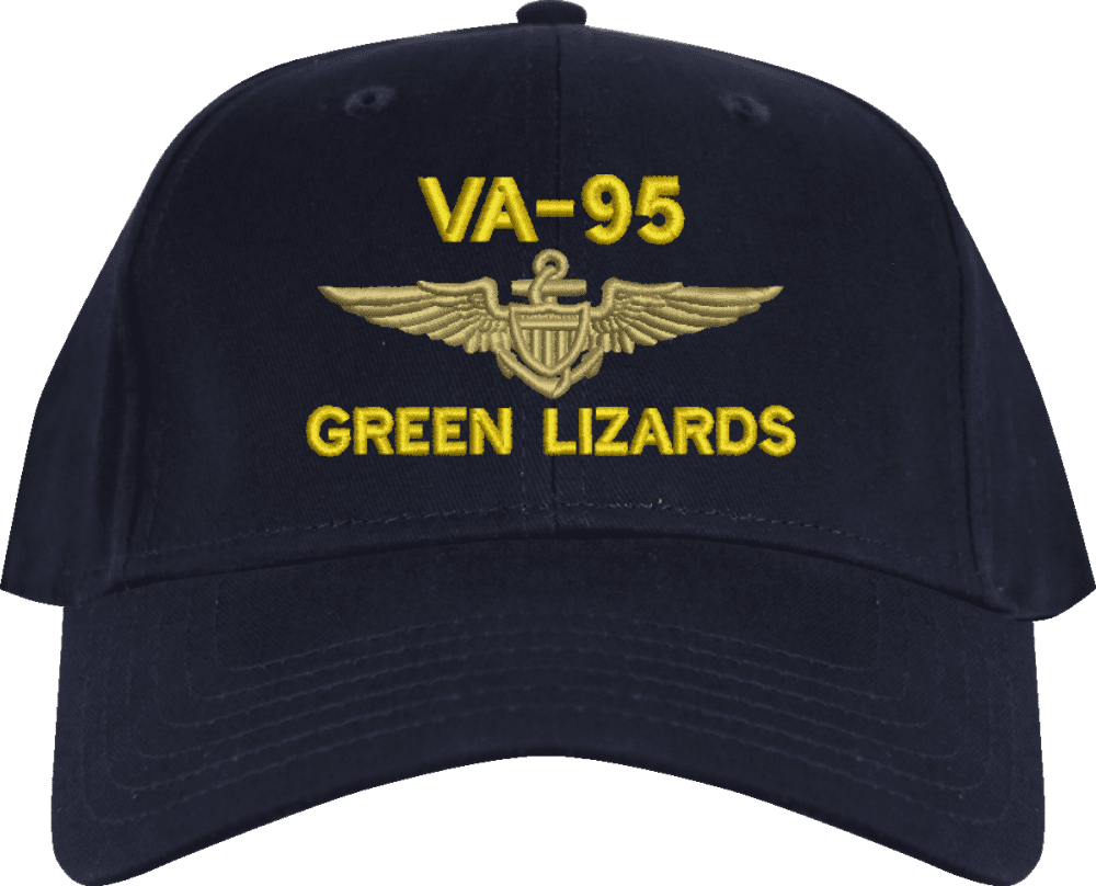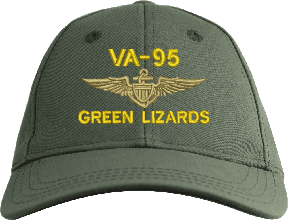 VA-95 Green Lizard Custom Embroidered CapMilitaryBest is proud to offer this VA-95 Green Lizard Custom Embroidered Cap. The design of this Cap is crisp, clean, and sure to be loved by people of all ages! This Cap is crafted by our skilled embroidery technicians at our facilities in Scottsboro, AL. As with all MilitaryBest items, your satisfaction is guaranteed!