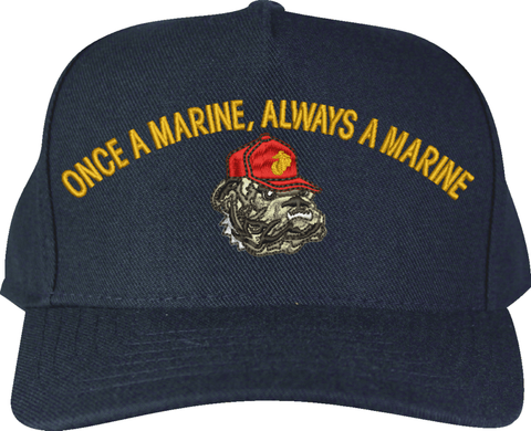 Once a Marine, Always a Marine with Bulldog Custom Embroidered CapMilitaryBest is proud to offer this Once a Marine, Always a Marine with Bulldog Custom Embroidered Cap. The design of this Cap is crisp, clean, and sure to be loved by people of all ages! This Cap is crafted by our skilled embroidery technicians at our facilities in Scottsboro, AL. As with all MilitaryBest items, your satisfaction is guaranteed!
