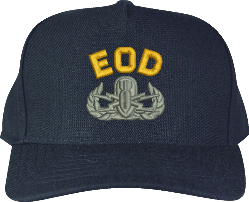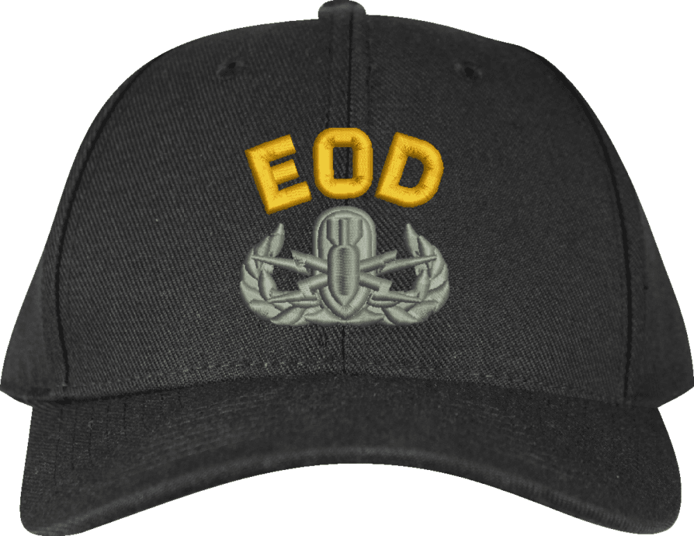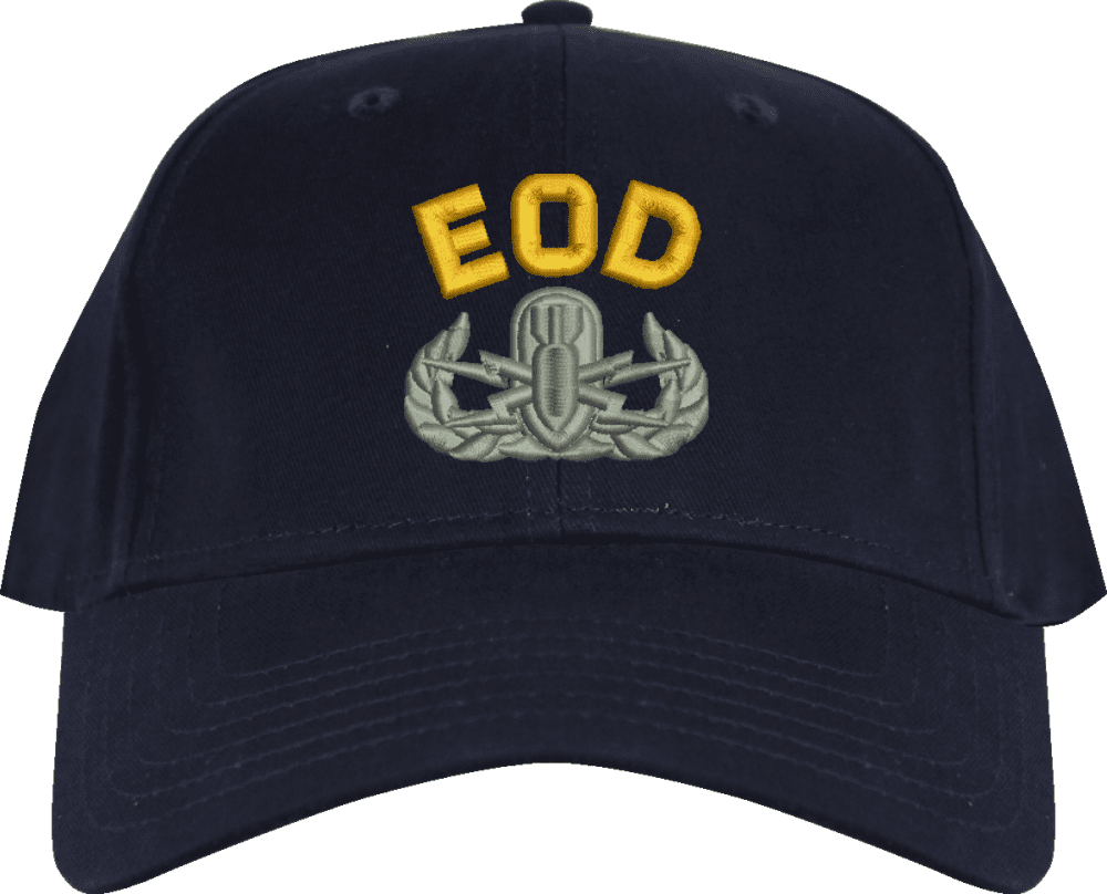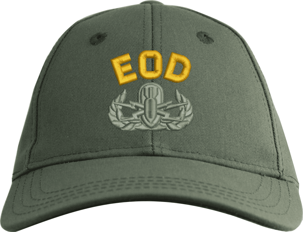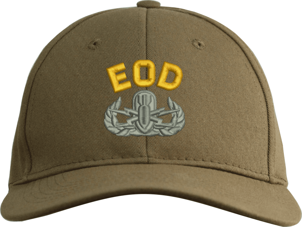 EOD with Logo Custom Embroidered CapMilitaryBest is proud to offer this EOD with Logo Custom Embroidered Cap. The design of this Cap is crisp, clean, and sure to be loved by people of all ages! This Cap is crafted by our skilled embroidery technicians at our facilities in Scottsboro, AL. As with all MilitaryBest items, your satisfaction is guaranteed!