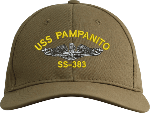 USS Pampanito SS-383 with Dolphins Custom Embroidered CapMilitaryBest is proud to offer this USS Pampanito SS-383 with Dolphins Custom Embroidered Cap. The design of this Cap is crisp, clean, and sure to be loved by people of all ages! This Cap is crafted by our skilled embroidery technicians at our facilities in Scottsboro, AL. As with all MilitaryBest items, your satisfaction is guaranteed!