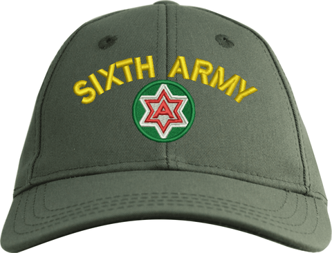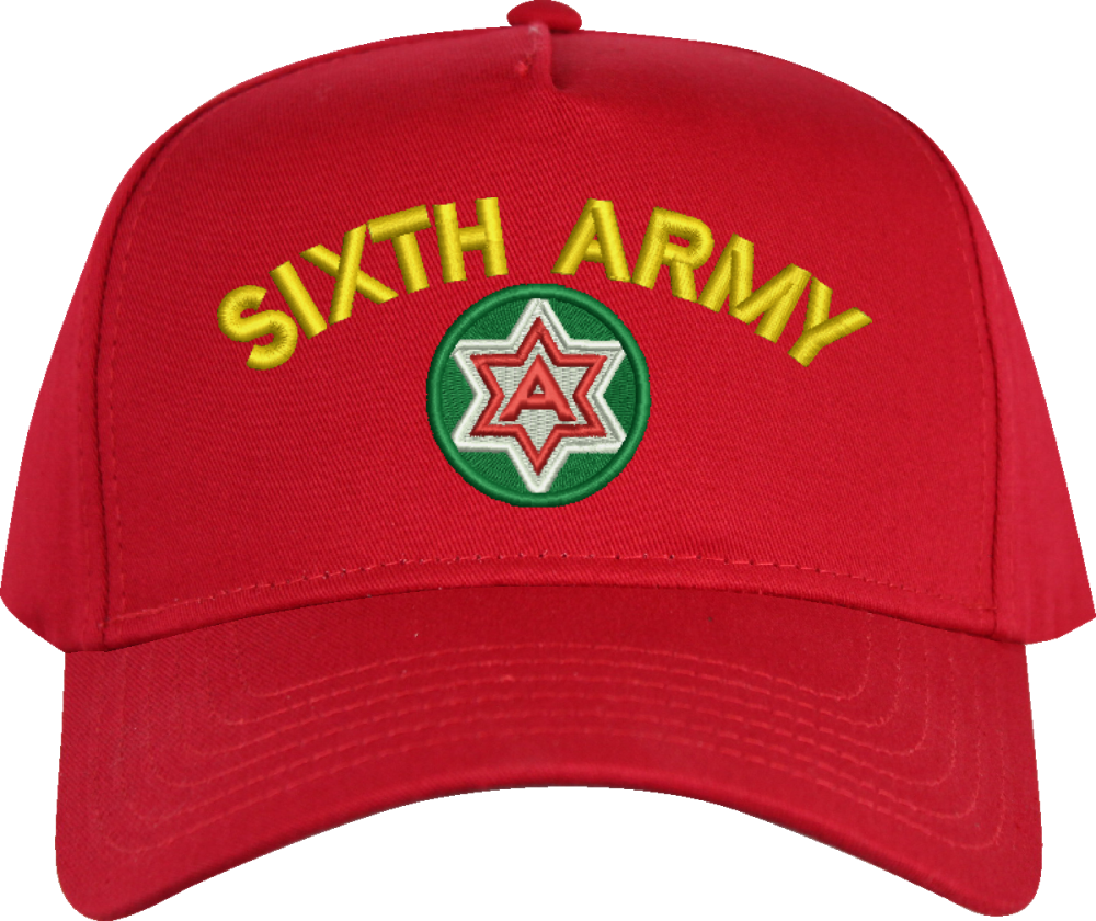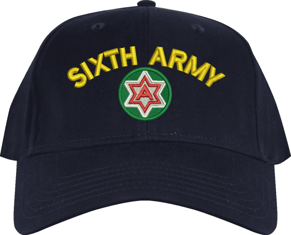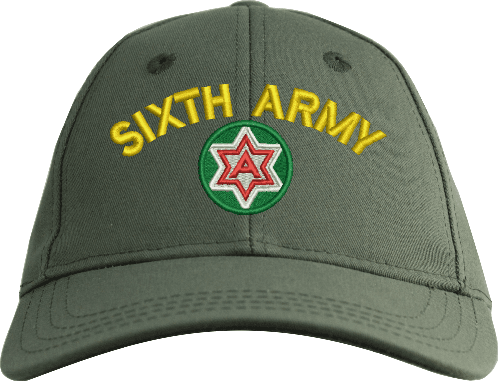 6th Army with Crest Custom Embroidered CapMilitaryBest is proud to offer this 6th Army with Crest Custom Embroidered Cap. The design of this Cap is crisp, clean, and sure to be loved by people of all ages! This Cap is crafted by our skilled embroidery technicians at our facilities in Scottsboro, AL. As with all MilitaryBest items, your satisfaction is guaranteed!