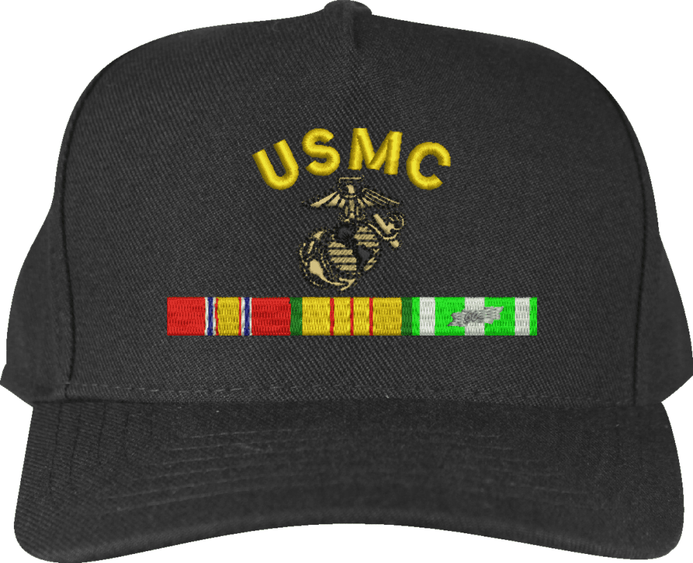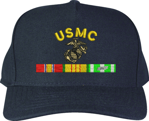 U.S.M.C. with Eagle Globe and Anchor and Vietnam Veteran Ribbons Custom Embroidered CapU.S.M.C. with Eagle Globe and Anchor and Vietnam Veteran Ribbons Custom Embroidered Cap
