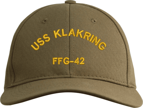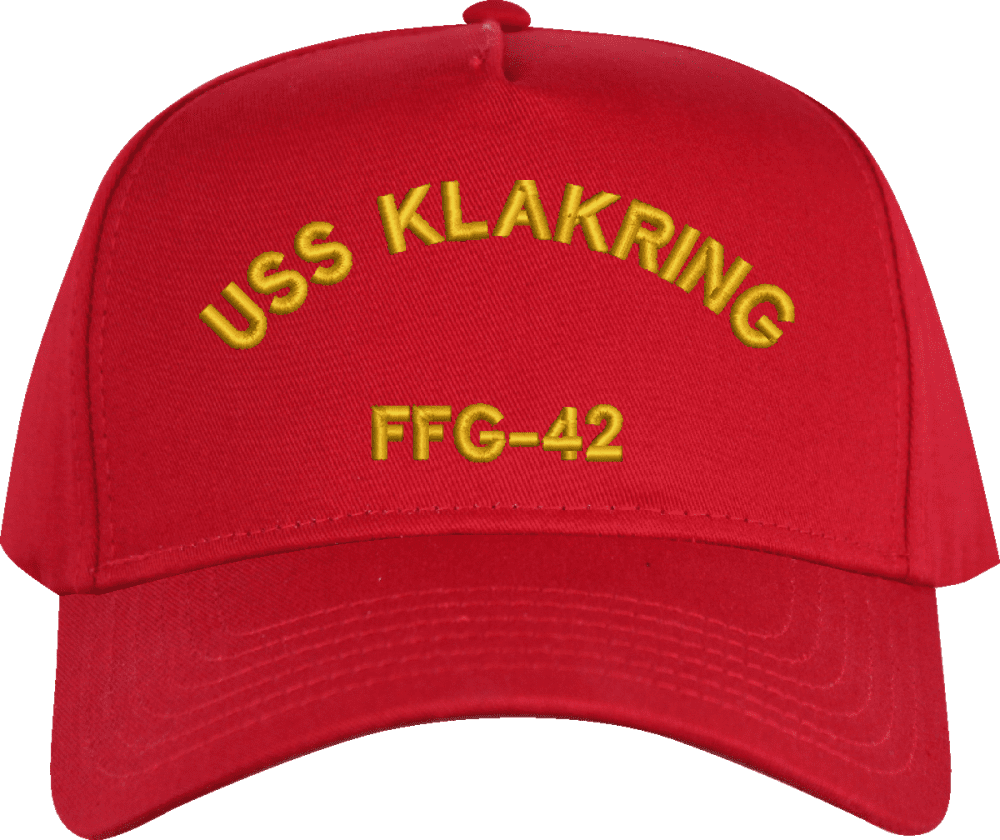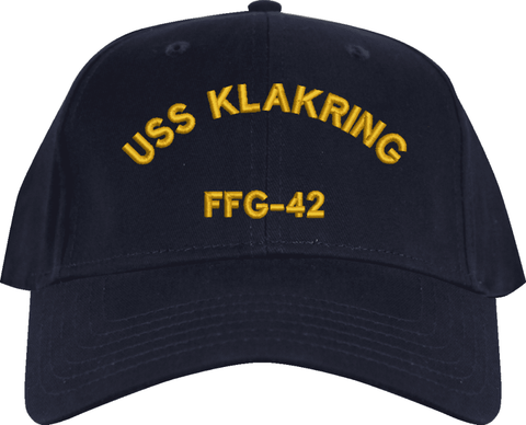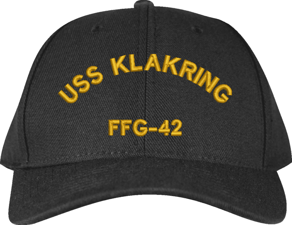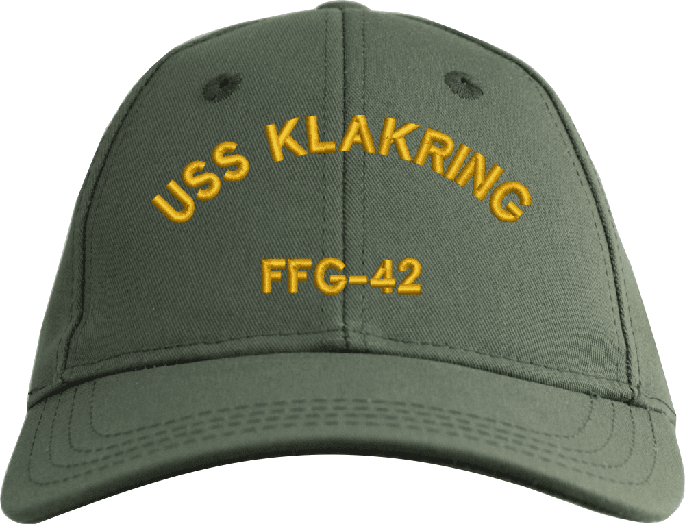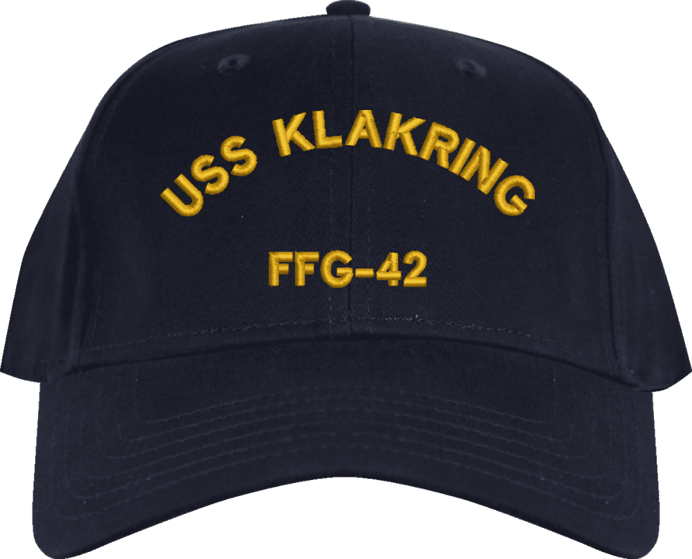 USS Klakring FFG-42 Ship Text Only Custom Embroidered CapMilitaryBest is proud to offer this USS Klakring FFG-42 Ship Custom Embroidered Cap. The design of this Cap is crisp, clean, and sure to be loved by people of all ages! This Cap is crafted by our skilled embroidery technicians at our facilities in Scottsboro, AL. As with all MilitaryBest items, your satisfaction is guaranteed!