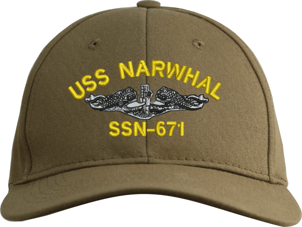 USS Narwhal SSN-671 with Dolphins Custom Embroidered CapMilitaryBest is proud to offer this USS Narwhal SSN-671 with Dolphins Custom Embroidered Cap. The design of this Cap is crisp, clean, and sure to be loved by people of all ages! This Cap is crafted by our skilled embroidery technicians at our facilities in Scottsboro, AL. As with all MilitaryBest items, your satisfaction is guaranteed!
