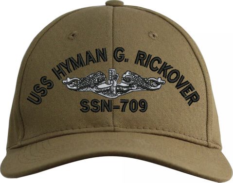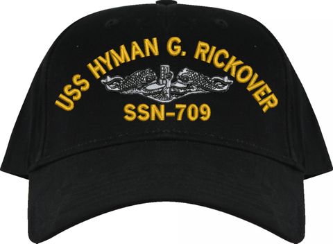 USS Hyman G. Rickover SSN-709 with Dolphins Custom Embroidered CapMilitaryBest is proud to offer this USS Hyman G. Rickover SSN-709 with Dolphins Custom Embroidered Cap. The design of this Cap is crisp, clean, and sure to be loved by people of all ages! This Cap is crafted by our skilled embroidery technicians at our facilities in Scottsboro, AL. As with all MilitaryBest items, your satisfaction is guaranteed!