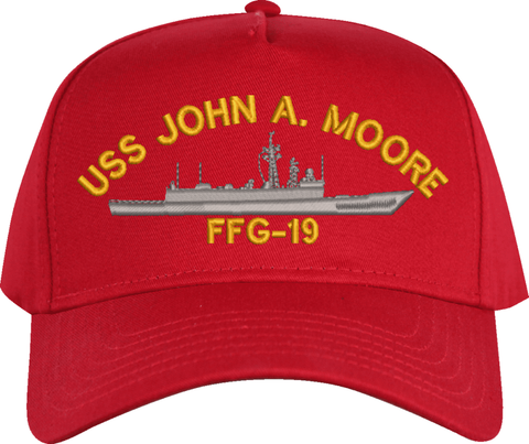 USS John A. Moore FFG-19 Ship Custom Embroidered CapMilitaryBest is proud to offer this USS John A. Moore FFG-19 Ship Custom Embroidered Cap. The design of this Cap is crisp, clean, and sure to be loved by people of all ages! This Cap is crafted by our skilled embroidery technicians at our facilities in Scottsboro, AL. As with all MilitaryBest items, your satisfaction is guaranteed!