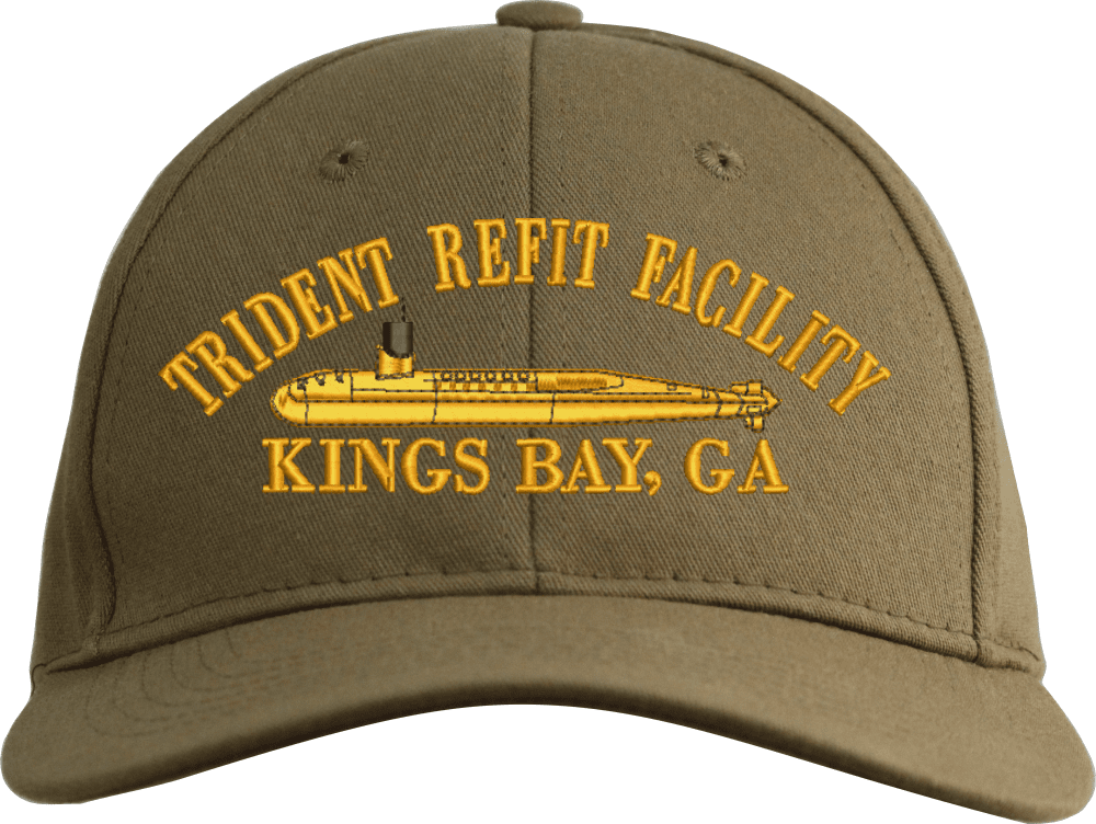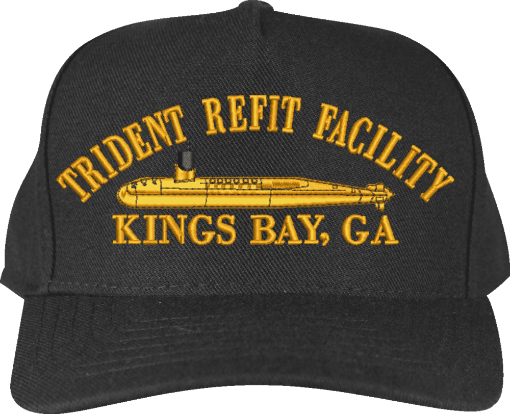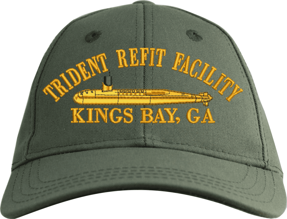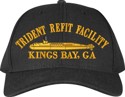 Trident Refit Facility at Kings Bay Custom Embroidered CapMilitaryBest is proud to offer this Trident Refit Facility at Kings Bay Custom Embroidered Cap. The design of this Cap is crisp, clean, and sure to be loved by people of all ages! This Cap is crafted by our skilled embroidery technicians at our facilities in Scottsboro, AL. As with all MilitaryBest items, your satisfaction is guaranteed!