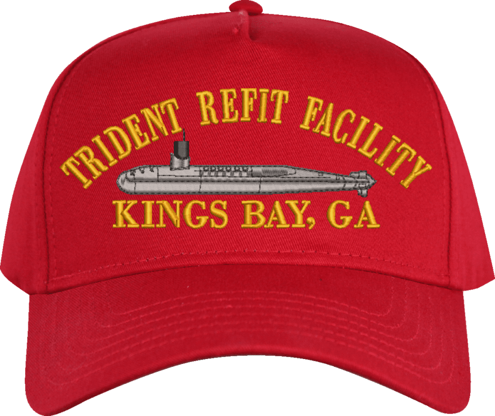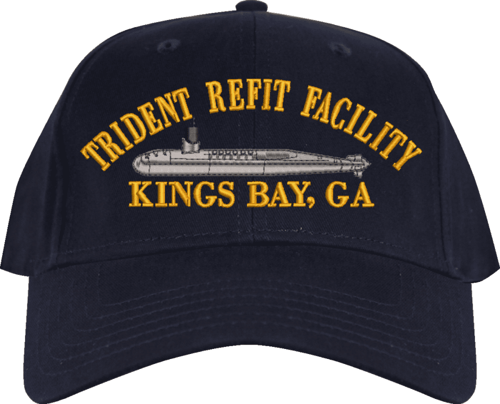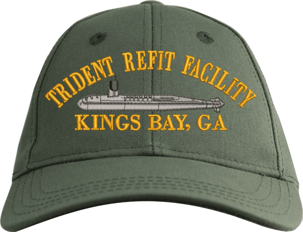 Trident Refit Facility Kings Bay Custom Embroidered CapMilitaryBest is proud to offer this Trident Refit Facility Kings Bay Custom Embroidered Cap. The design of this Cap is crisp, clean, and sure to be loved by people of all ages! This Cap is crafted by our skilled embroidery technicians at our facilities in Scottsboro, AL. As with all MilitaryBest items, your satisfaction is guaranteed!