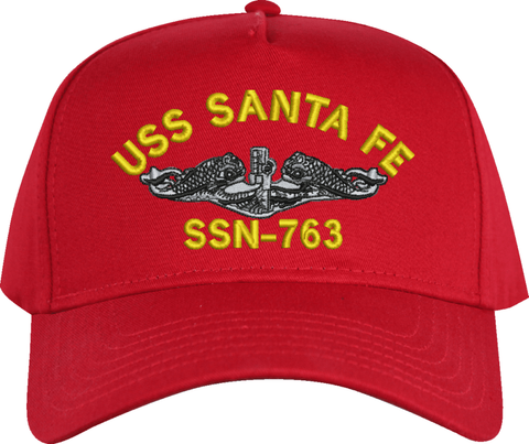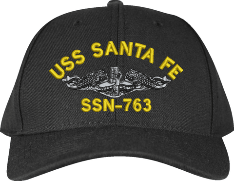 USS Santa Fe SSN-763 with Dolphins Custom Embroidered CapMilitaryBest is proud to offer this USS Santa Fe SSN-763 with Dolphins Custom Embroidered Cap. The design of this Cap is crisp, clean, and sure to be loved by people of all ages! This Cap is crafted by our skilled embroidery technicians at our facilities in Scottsboro, AL. As with all MilitaryBest items, your satisfaction is guaranteed!