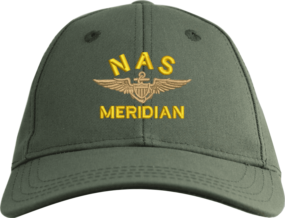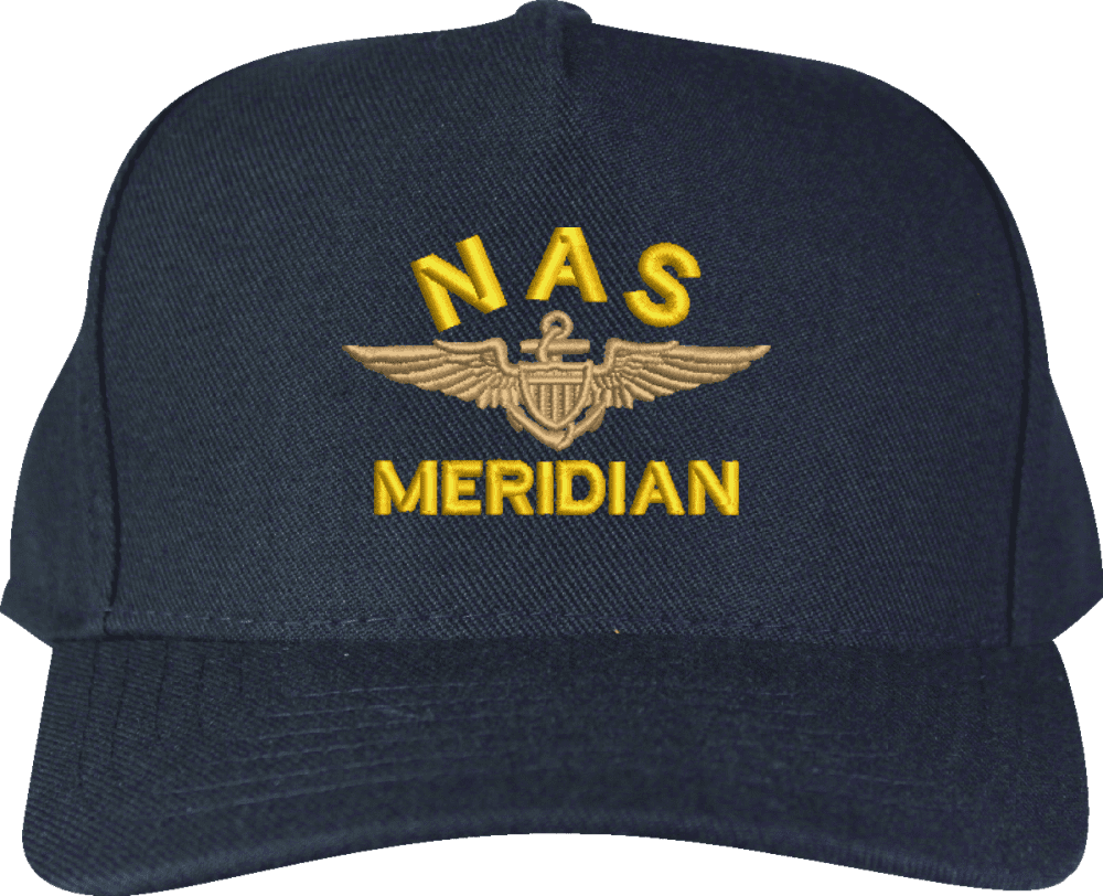 NAS Meridian with Aviator Wings Custom Embroidered CapMilitaryBest is proud to offer this NAS Meridian with Aviator Wings Custom Embroidered Cap. The design of this Cap is crisp, clean, and sure to be loved by people of all ages! This Cap is crafted by our skilled embroidery technicians at our facilities in Scottsboro, AL. As with all MilitaryBest items, your satisfaction is guaranteed!
