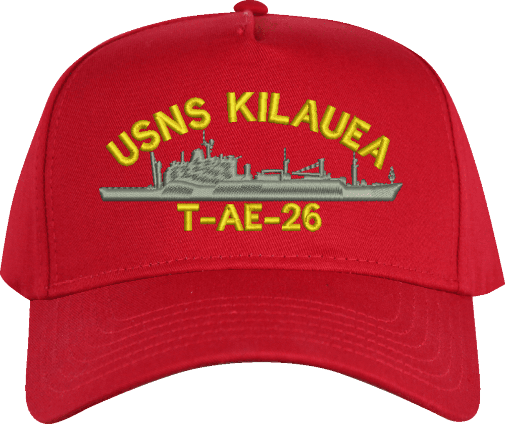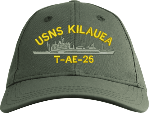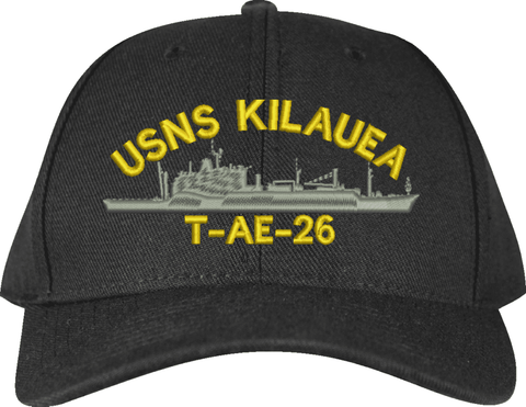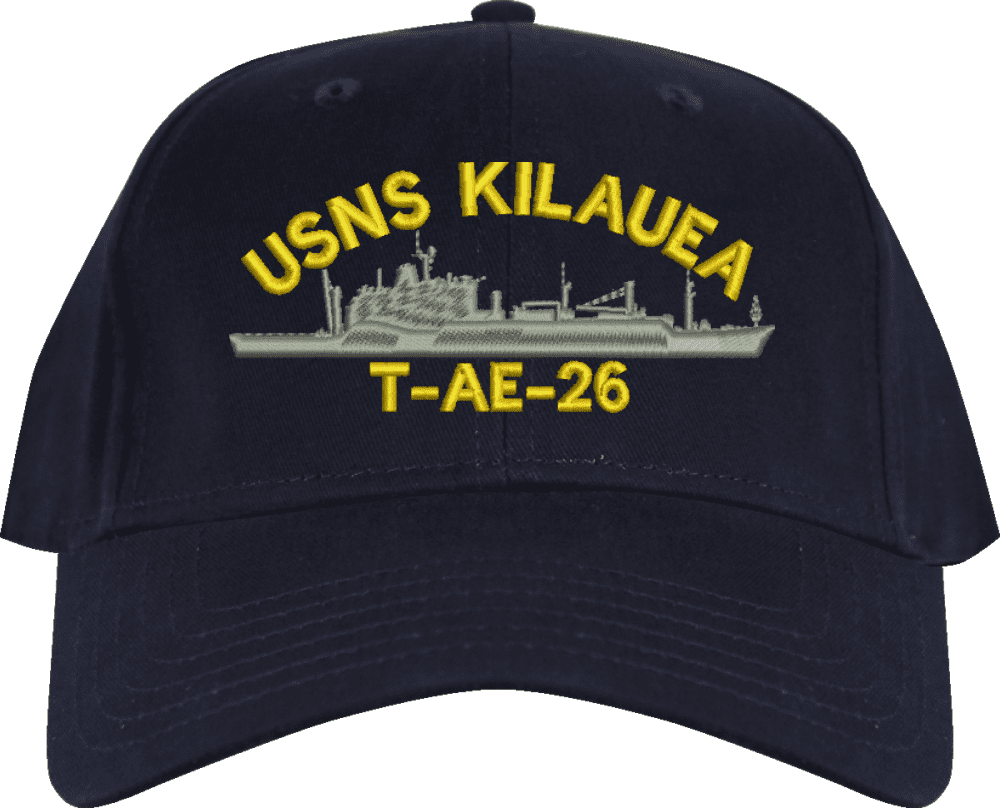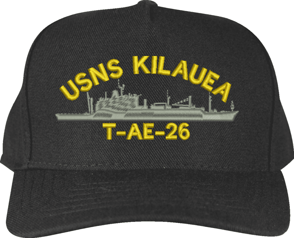 USNS Kilauea T-AE-26 Ship Custom Embroidered CapMilitaryBest is proud to offer this USNS Kilauea T-AE-26 Ship Custom Embroidered Cap. The design of this Cap is crisp, clean, and sure to be loved by people of all ages! This Cap is crafted by our skilled embroidery technicians at our facilities in Scottsboro, AL. As with all MilitaryBest items, your satisfaction is guaranteed!