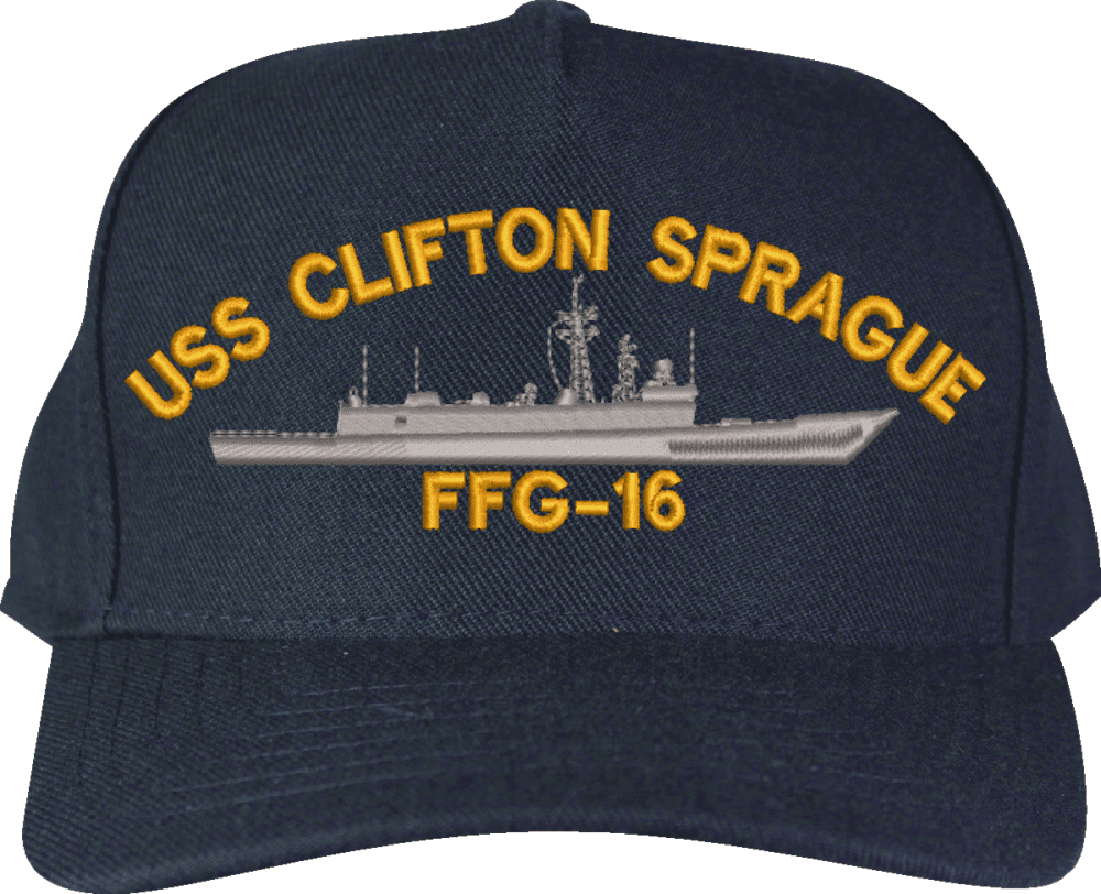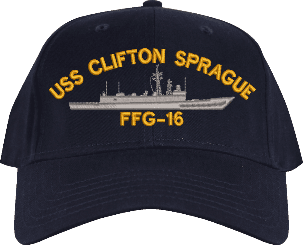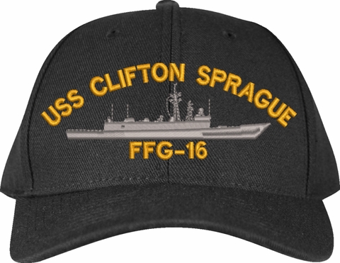 USS Clifton Sprague FFG-16 Custom Embroidered CapMilitaryBest is proud to offer this USS CLIFTON SPRAGUE FFG-16 Custom Embroidered Cap. The design of this Cap is crisp, clean, and sure to be loved by people of all ages! This Cap is crafted by our skilled embroidery technicians at our facilities in Scottsboro, AL. As with all MilitaryBest items, your satisfaction is guaranteed!