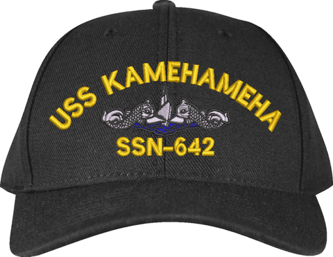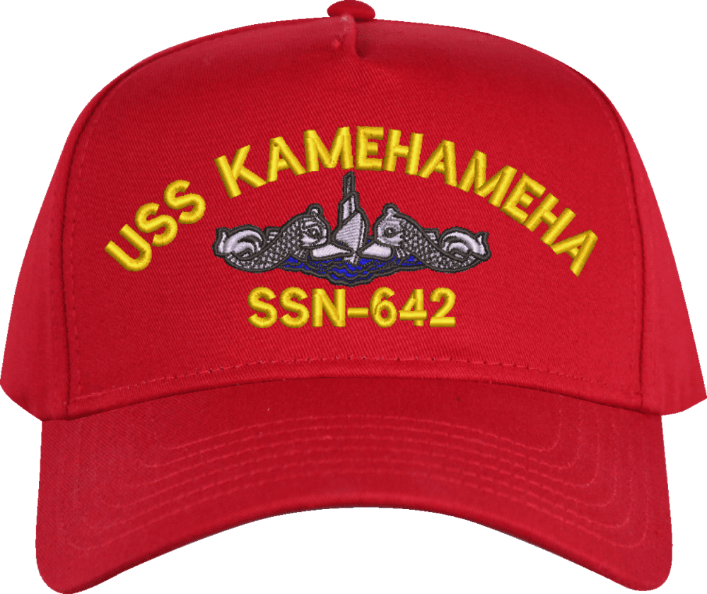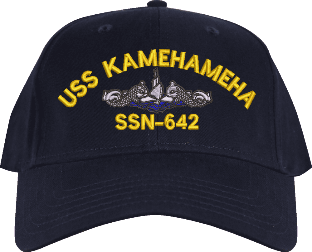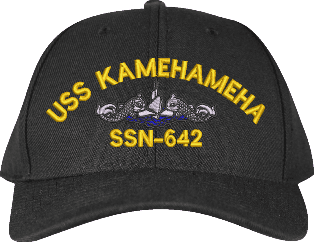 USS Kamehameha SSN-642 with Blue Water Dolphins Custom Embroidered CapMilitaryBest is proud to offer this USS Kamehameha SSN-642 with Blue Water Dolphins Custom Embroidered Cap. The design of this Cap is crisp, clean, and sure to be loved by people of all ages! This Cap is crafted by our skilled embroidery technicians at our facilities in Scottsboro, AL. As with all MilitaryBest items, your satisfaction is guaranteed!