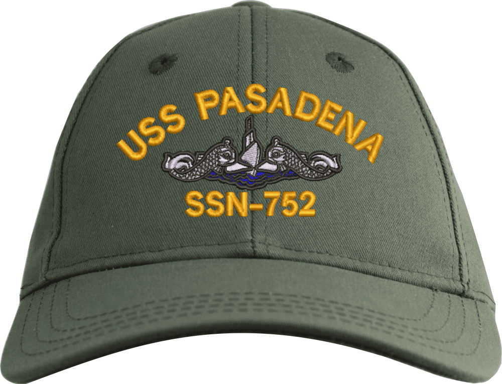 USS Pasadena SSN-752 with Blue Water Dolphins Custom Embroidered CapMilitaryBest is proud to offer this USS Pasadena SSN-752 with Blue Water Dolphins Custom Embroidered Cap. The design of this Cap is crisp, clean, and sure to be loved by people of all ages! This Cap is crafted by our skilled embroidery technicians at our facilities in Scottsboro, AL. As with all MilitaryBest items, your satisfaction is guaranteed!