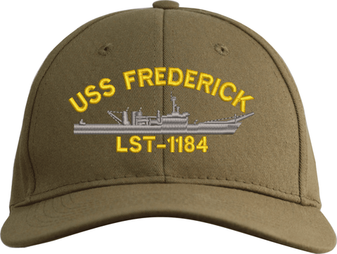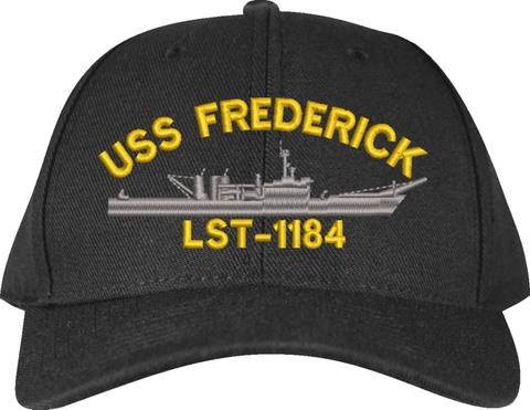 USS Frederick LST-1184 Ships Custom Embroidered CapMilitaryBest is proud to offer this USS Frederick LST-1184 Ships Custom Embroidered Cap. The design of this Cap is crisp, clean, and sure to be loved by people of all ages! This Cap is crafted by our skilled embroidery technicians at our facilities in Scottsboro, AL. As with all MilitaryBest items, your satisfaction is guaranteed!