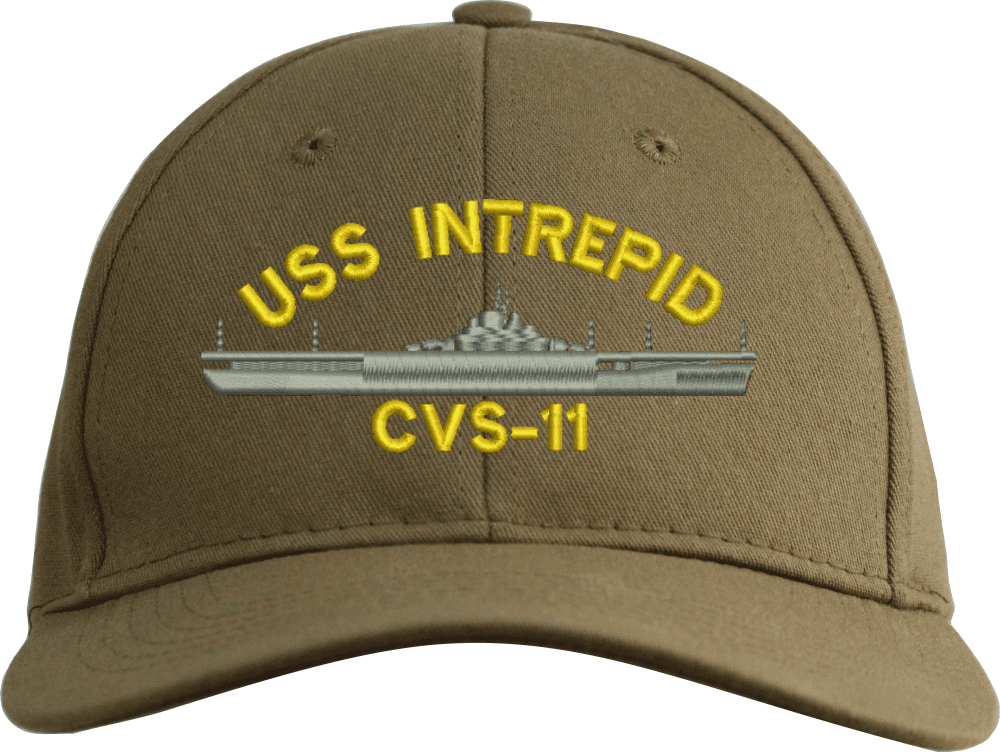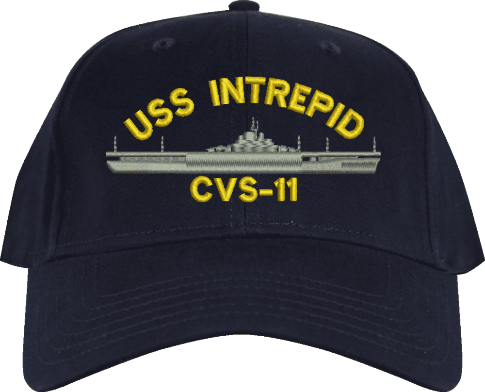 USS Intrepid CVS-11 Text Only Custom Embroidered CapMilitaryBest is proud to offer this USS Intrepid CVS-11 Text Only Custom Embroidered Cap. The design of this Cap is crisp, clean, and sure to be loved by people of all ages! This Cap is crafted by our skilled embroidery technicians at our facilities in Scottsboro, AL. As with all MilitaryBest items, your satisfaction is guaranteed!