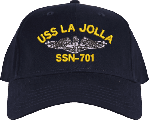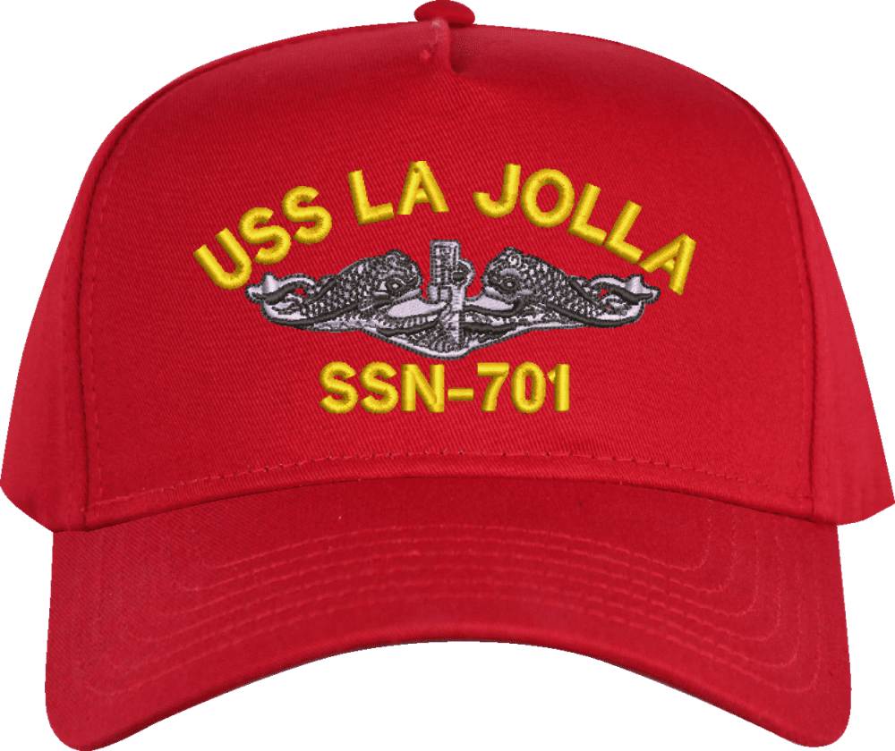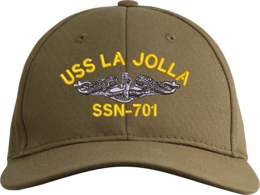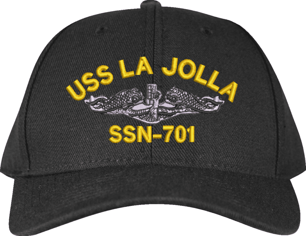 USS La Jolla SSN-701 with Dolphins Custom Embroidered CapMilitaryBest is proud to offer this USS La Jolla SSN-701 with Dolphins Custom Embroidered Cap. The design of this Cap is crisp, clean, and sure to be loved by people of all ages! This Cap is crafted by our skilled embroidery technicians at our facilities in Scottsboro, AL. As with all MilitaryBest items, your satisfaction is guaranteed!